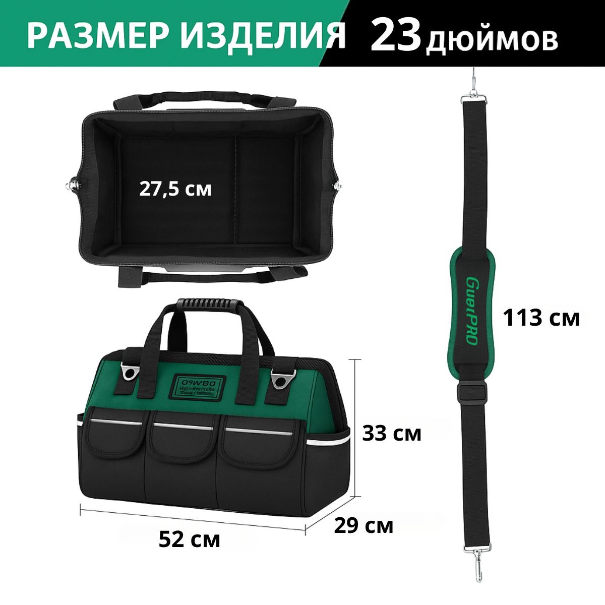 • Материал: Утолщенная ткань 1680D с влагостойкими свойствами обеспечивает защиту от влаги и долговечность.• Просторное основное отделение для хранения крупных инструментов, которое обеспечивает легкий доступ и организацию рабочего пространства.