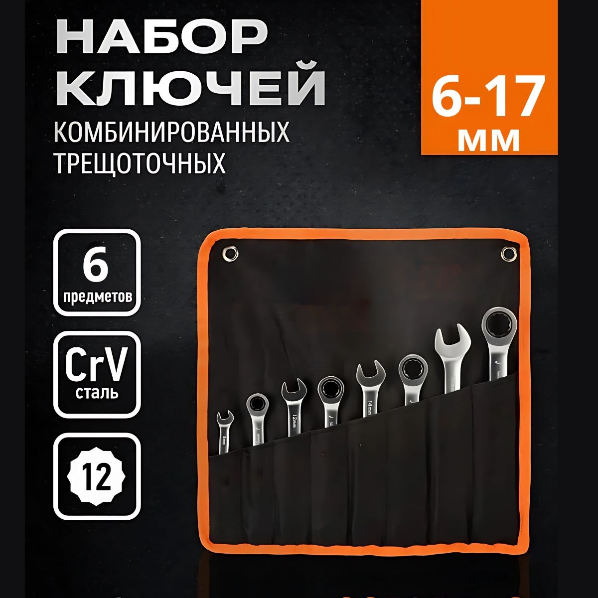 Комбинированные трещоточные шарнирные ключи — 6 шт.