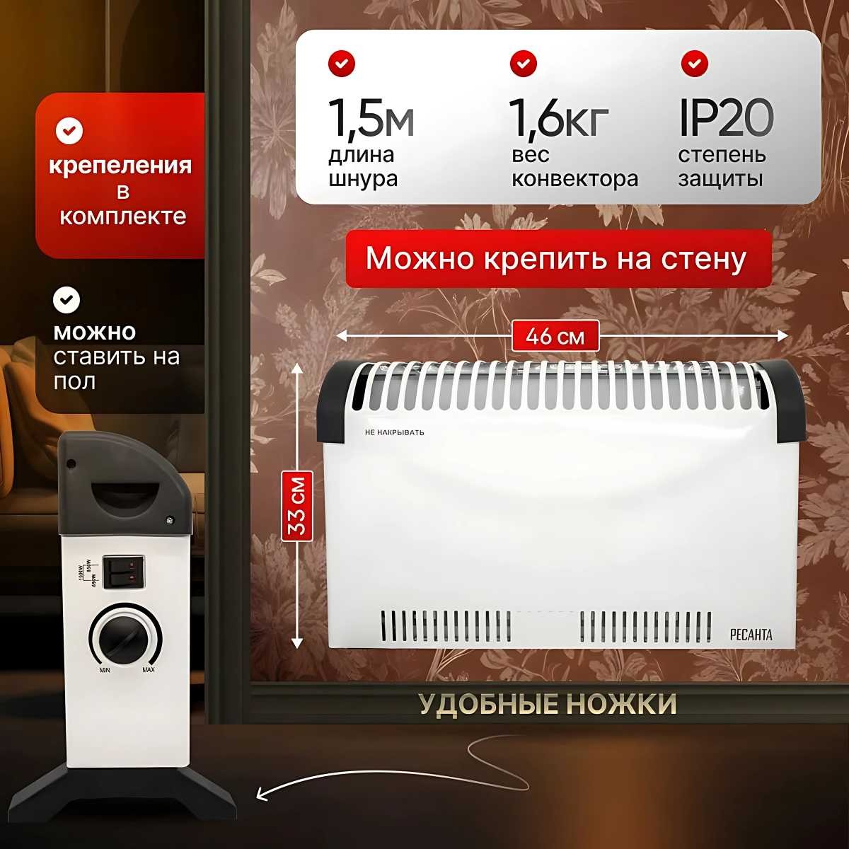 Электрический конвектор 2000 Вт с регулировкой температуры
