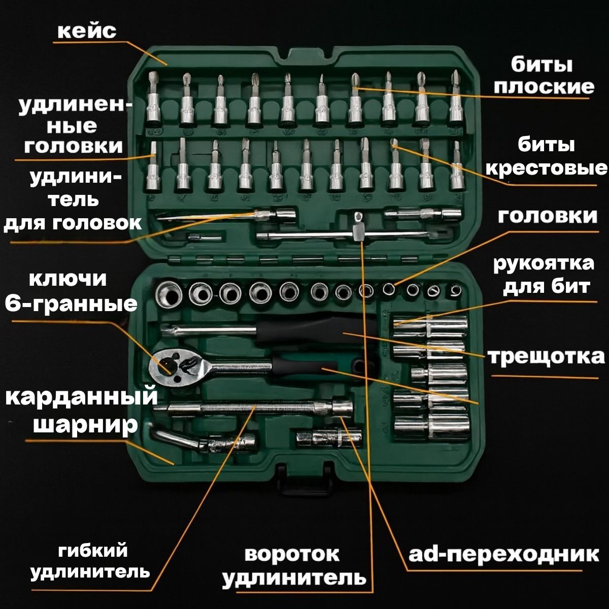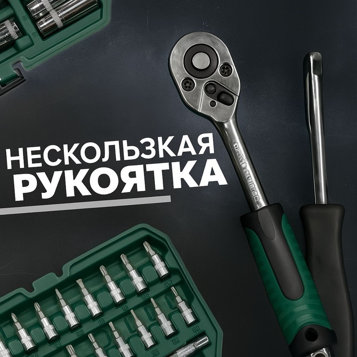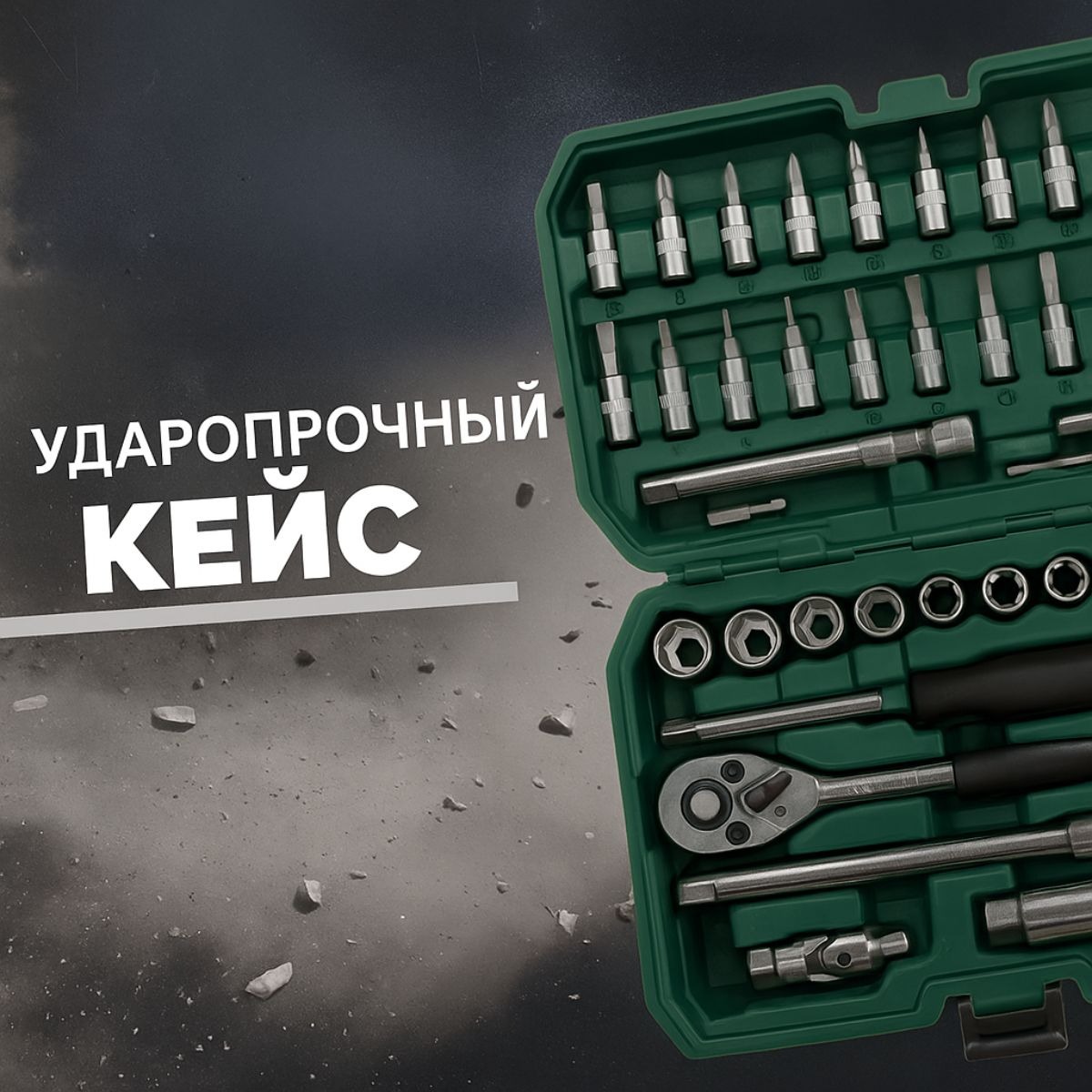 В комплект входят удлинённые головки, различные биты, удлинитель, трещотка, карданный шарнир и ключи. Такой набор позволяет выполнять широкий спектр ремонтных и сервисных работ с максимальным комфортом и эффективностью.