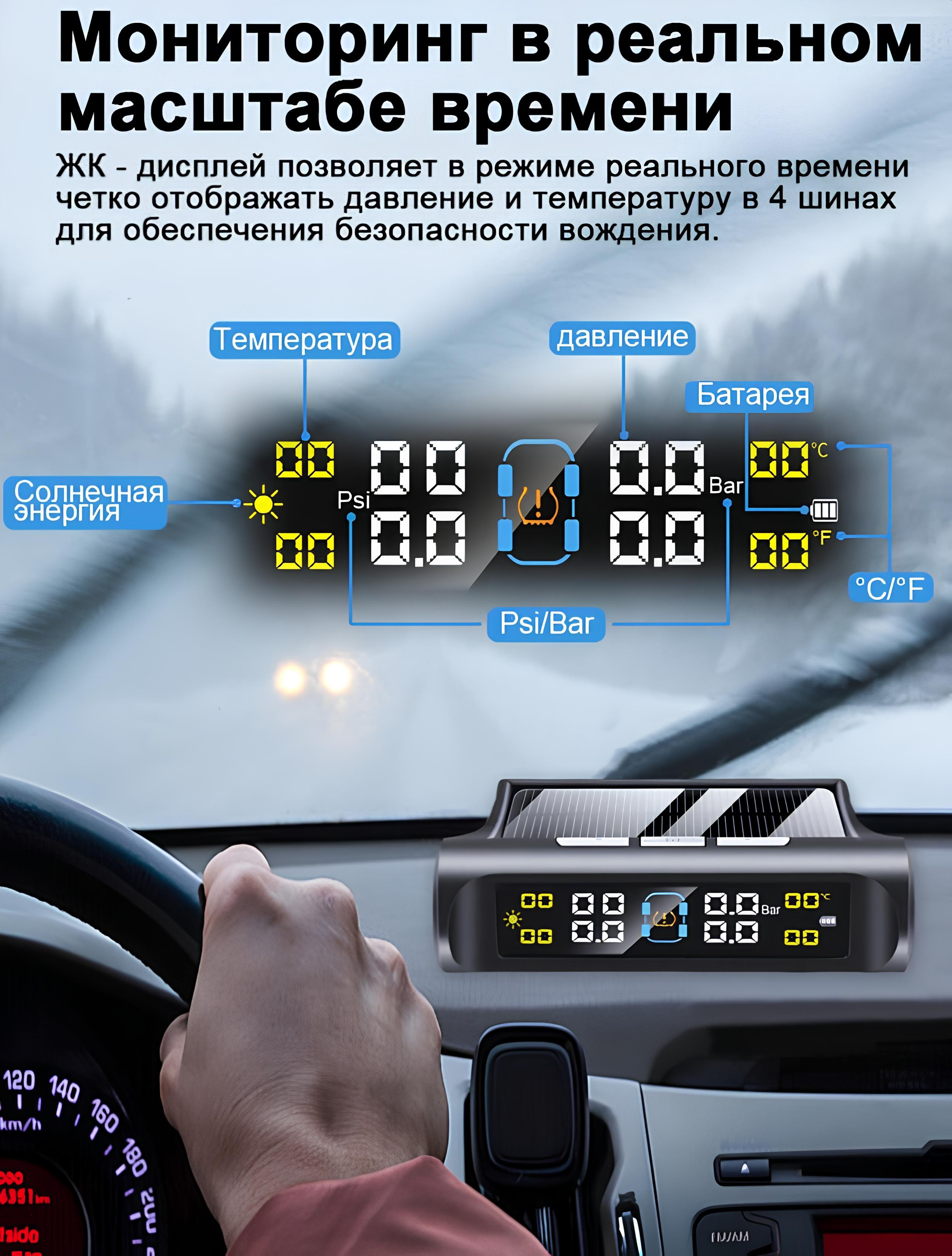 Система обеспечивает постоянный мониторинг состояния шин автомобиля, повышает безопасность движения и продлевает срок службы покрышек. Оснащена солнечной панелью для зарядки, не требует подключения к бортовой сети, удобна в использовании и проста в установке.