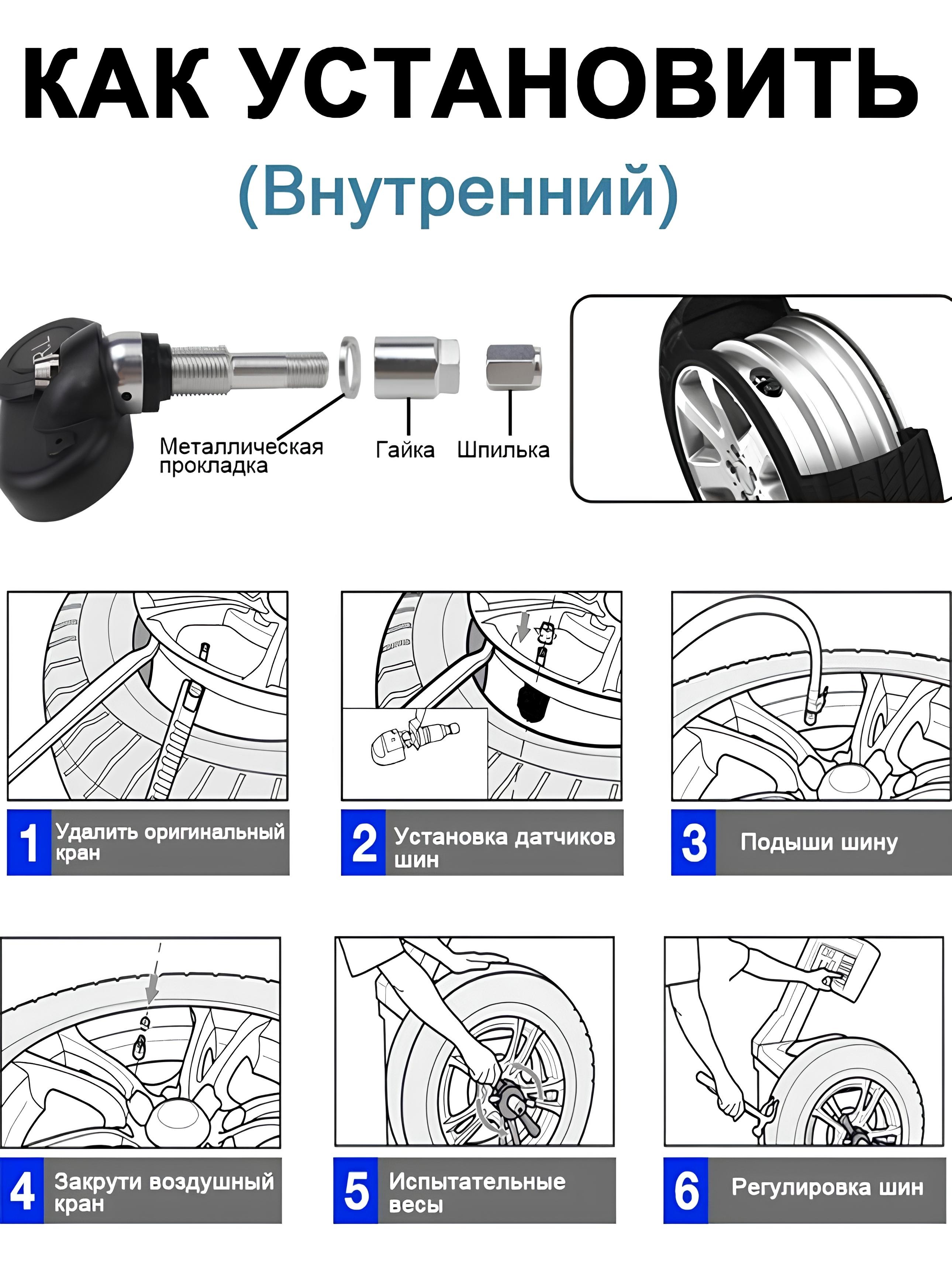 Умная система контроля давления и температуры в шинах TPMS внутренний датчик