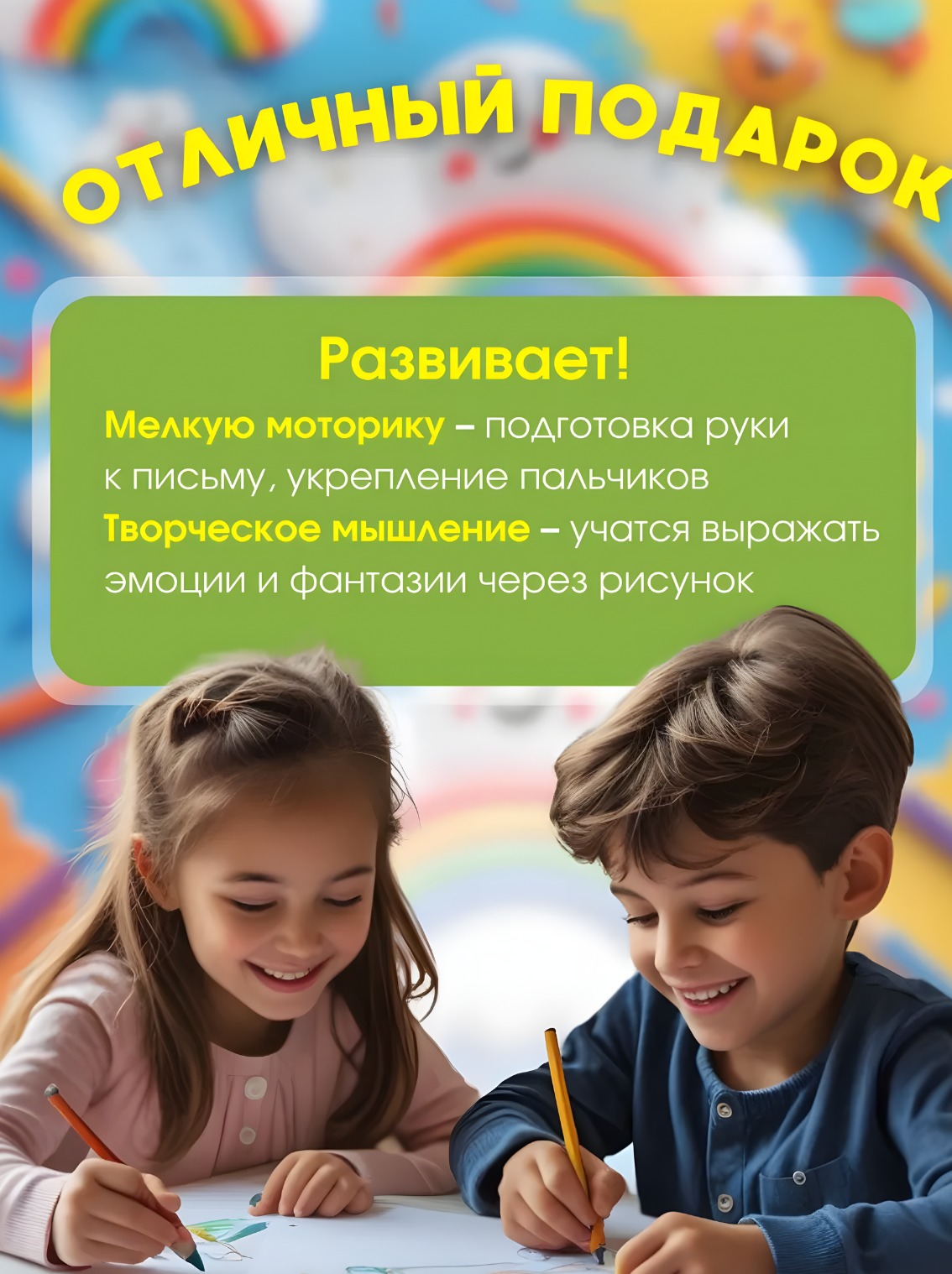 Такой комплект не только развивает фантазию и моторику, но и помогает ребёнку раскрыть свой творческий потенциал.Набор юного художника станет отличным подарком на день рождения, выпускной в детском саду или просто приятным сюрпризом для вашего ребёнка.