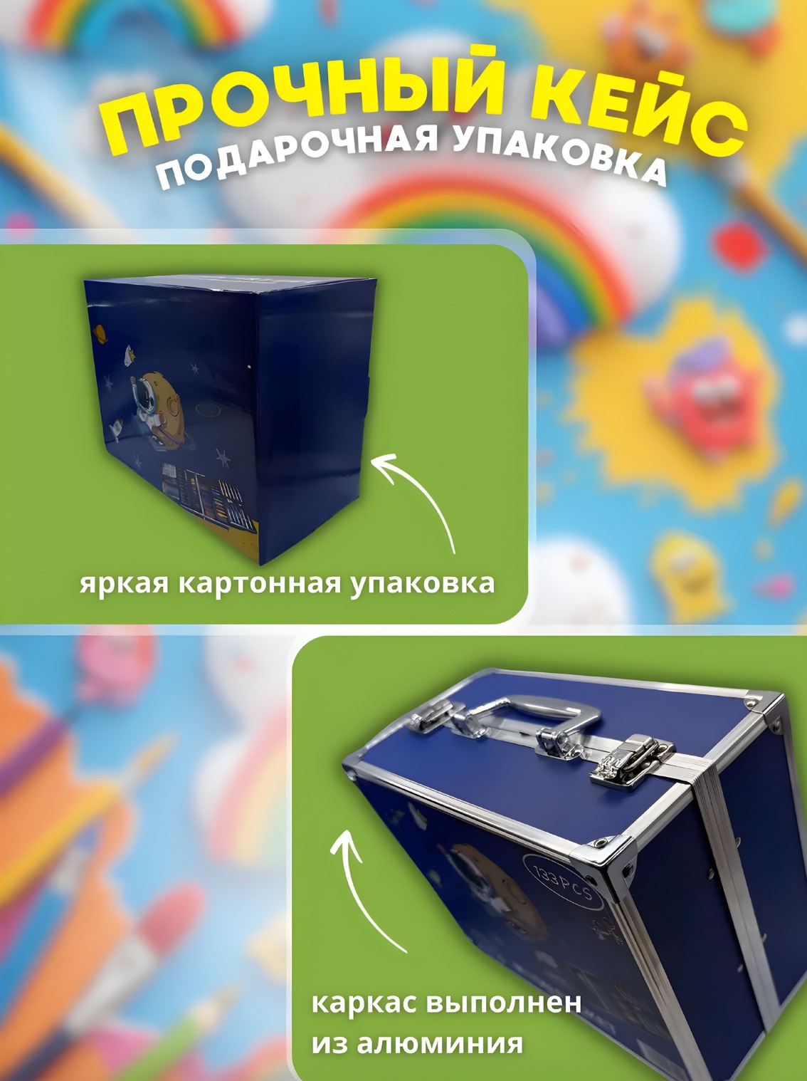 Набор для рисования и творчества в деревянном чемоданчике — это идеальный подарок для юных художников и тех, кто только начинает знакомство с миром искусства.