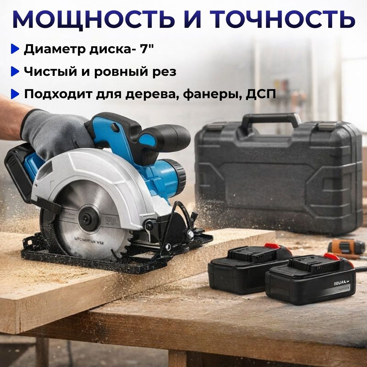 Ручная аккумуляторная циркулярная пила 7 дюймов + 2 АКБ