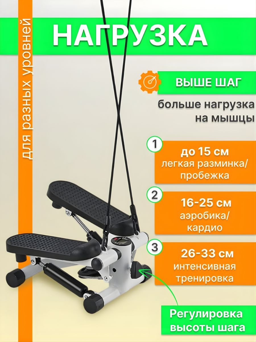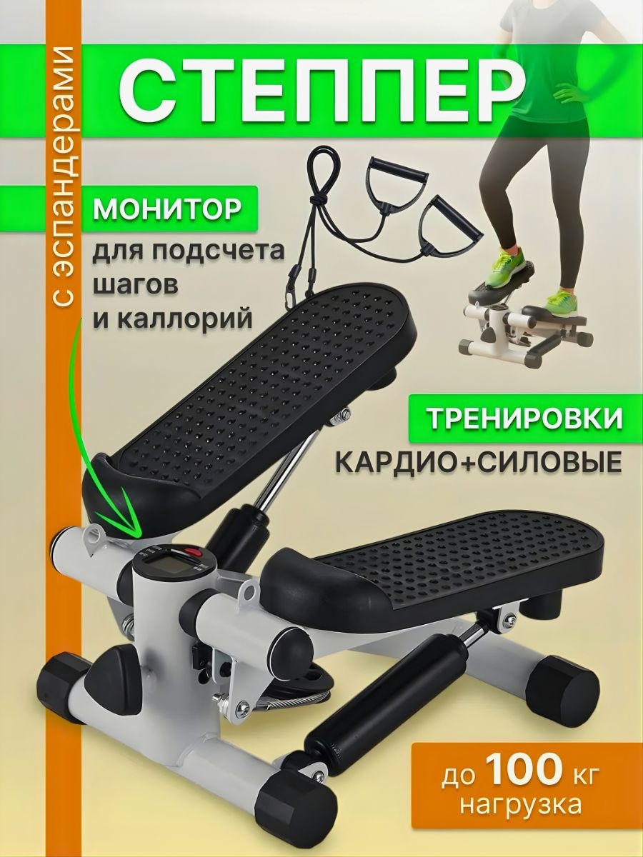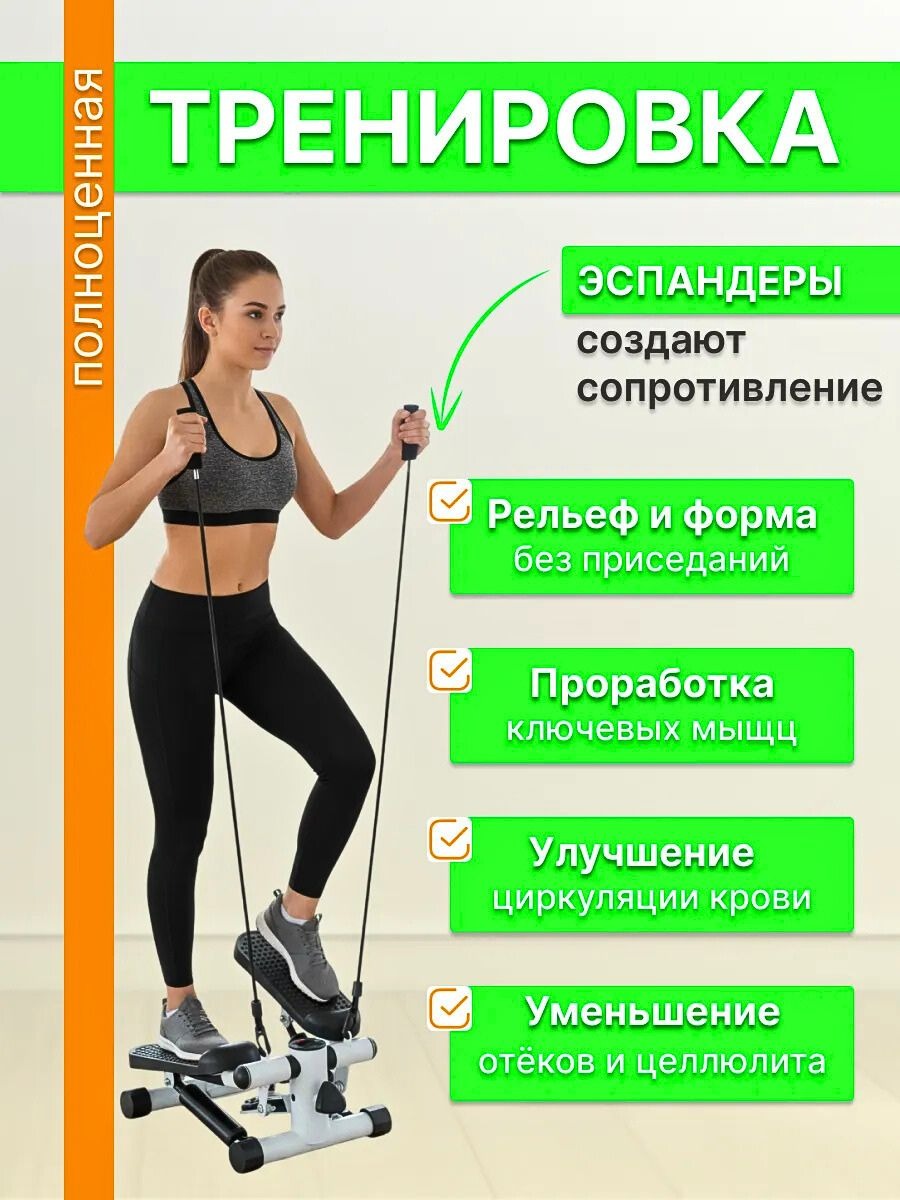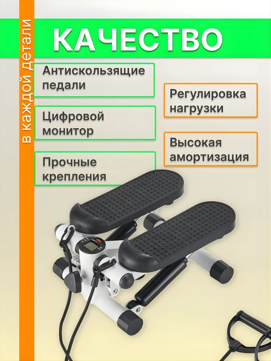 Мини-степпер с эспандерами — компактный тренажер для домашних тренировок, который сочетает кардио- и силовую нагрузку. Он имитирует подъем по лестнице, помогая эффективно тренировать мышцы ног, ягодиц и укреплять сердечно-сосудистую систему.