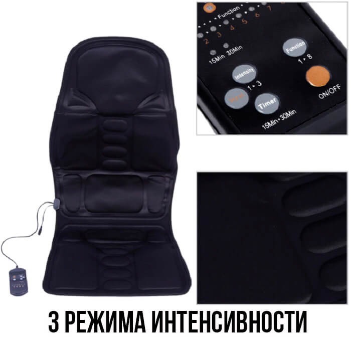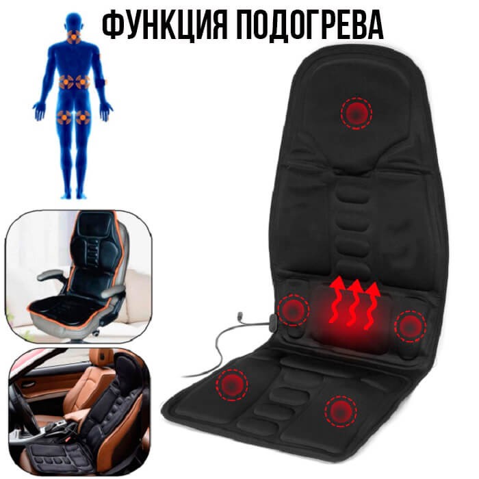 Массажная накидка с функцией подогрева CUSHION — современное устройство для проведения эффективного массажа в бытовых условияхили во время поездки в автомобиле, позволяющее эффективно снимать мышечноенапряжение и усталость.