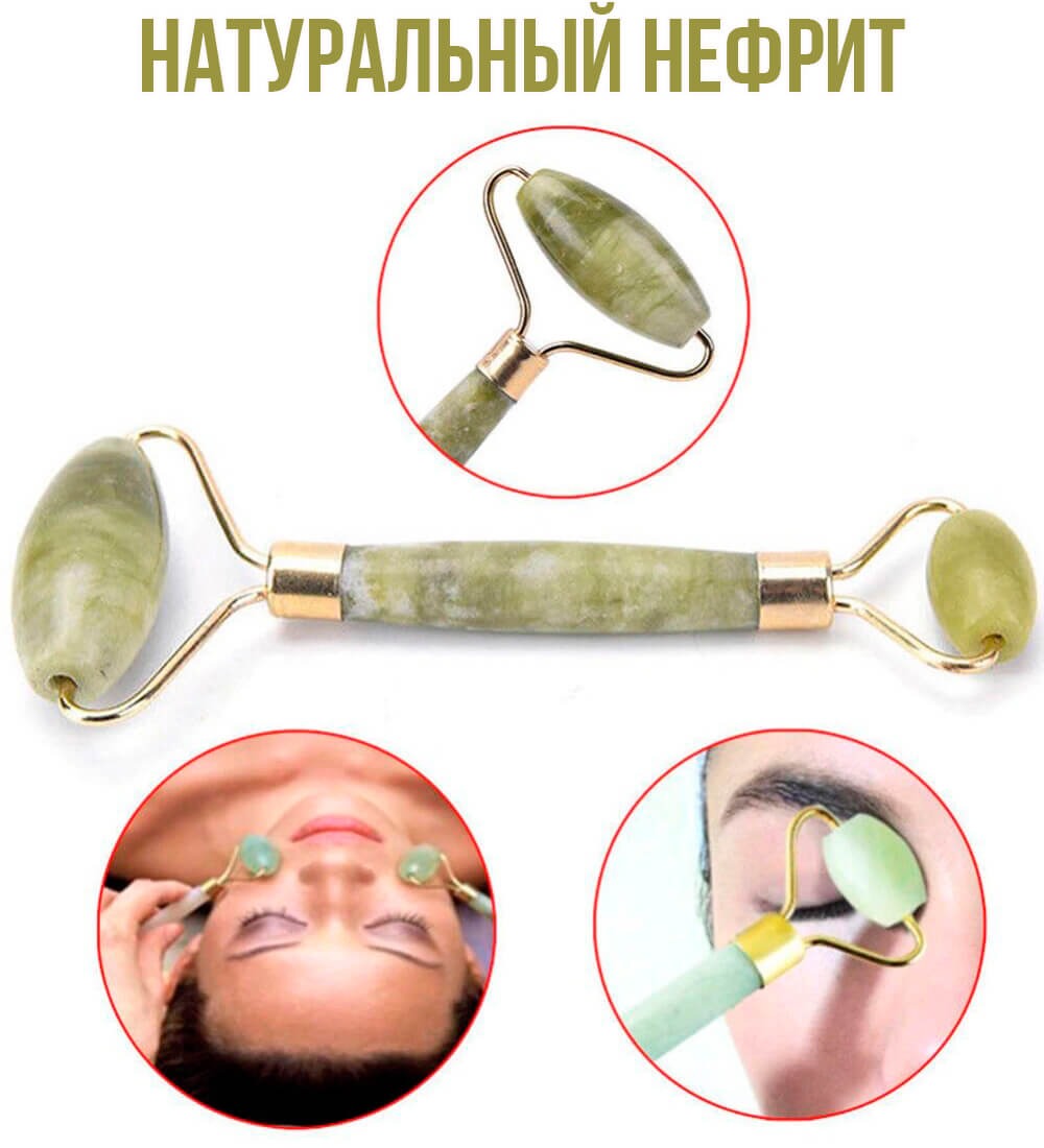 Роликовый массажер-гуаша для лица. Натуральный нефрит