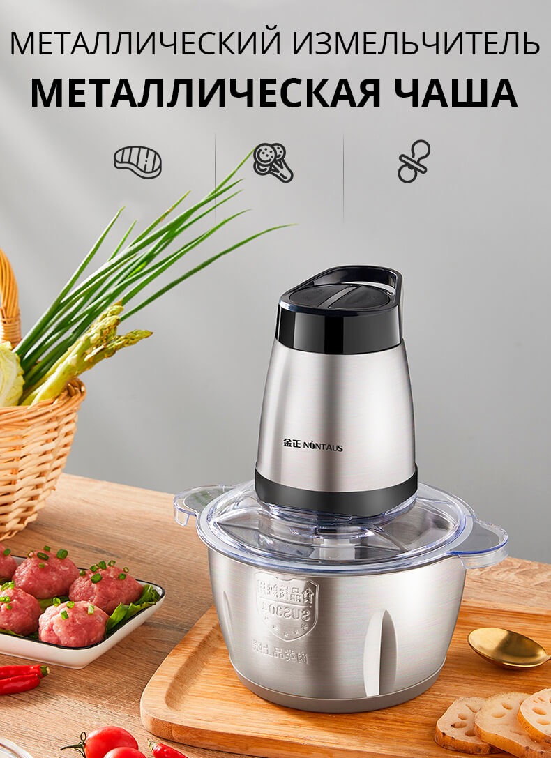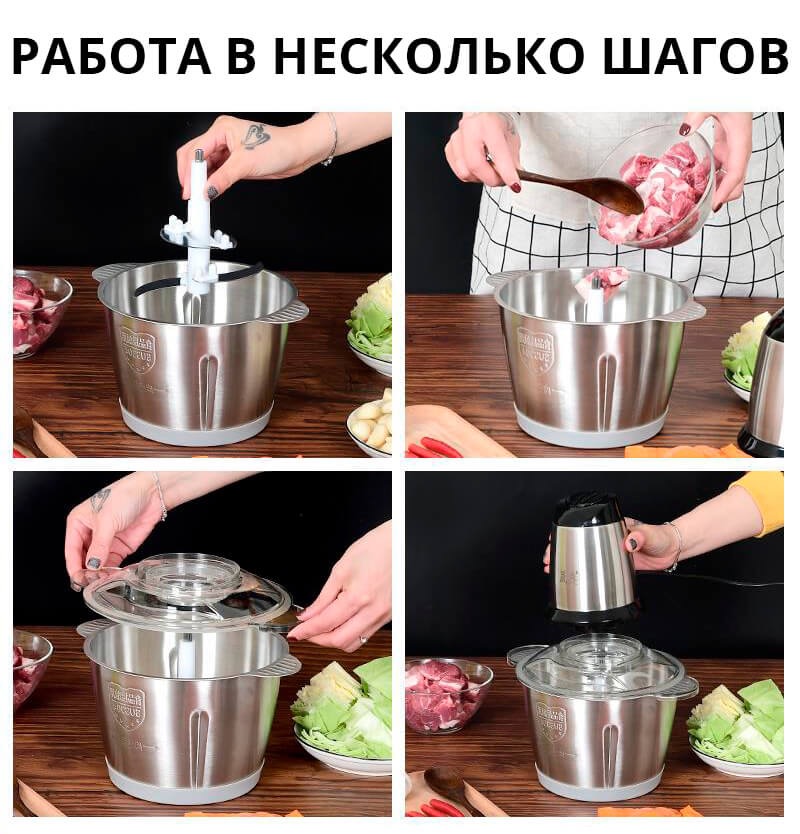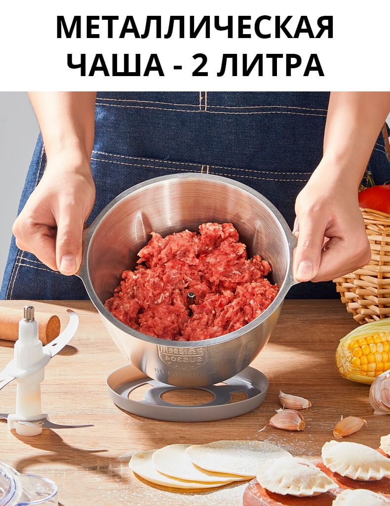 Измельчитель электрический 850W из нержавеющей стали – универсальный качественный блендер с удобной чашей. В нем Вы без усилий измельчите зелень, овощи для салата, фрукты, ягоды, а также нарубите мясо.