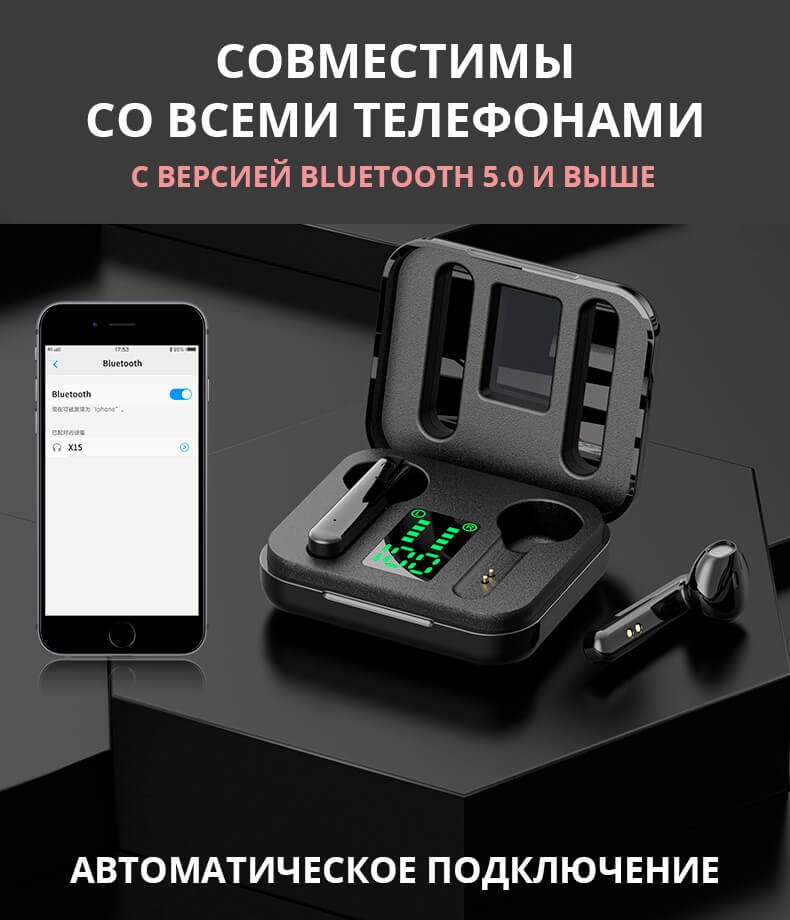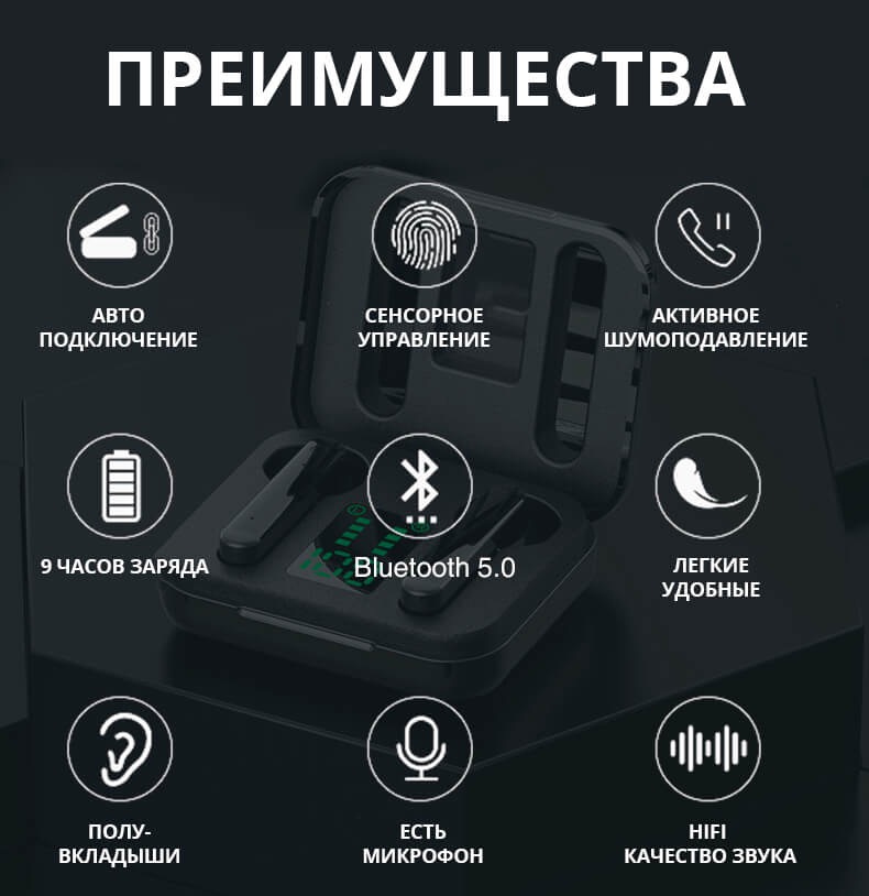 Беспроводные сенсорные наушники с цифровым кейсом и индикатором
