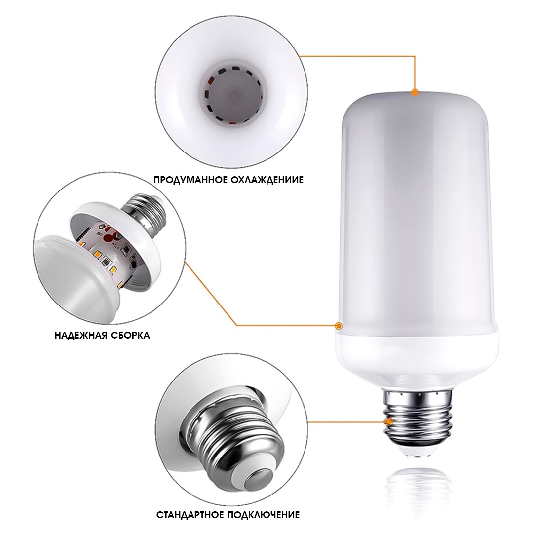 Лампочку огонь можно использовать на праздничных торжествах, в ресторанах, барах, в качестве украшения квартиры для вечеринок. Почувствуйте себя у камина или на сказочном балу в окружении пламени свечей!