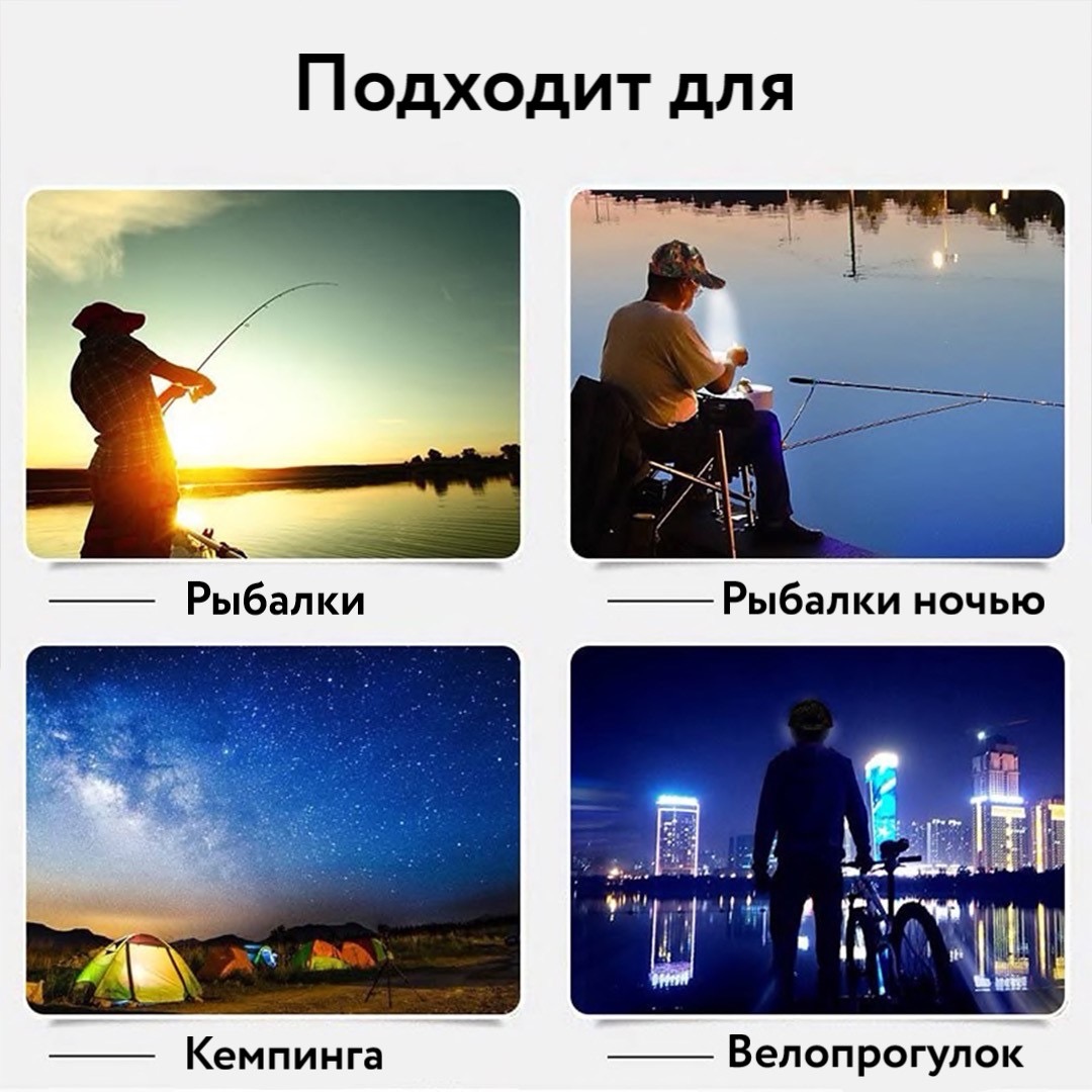 Кепка со встроенным LED фонариком для охоты, рыбалки, кемпинга, походов