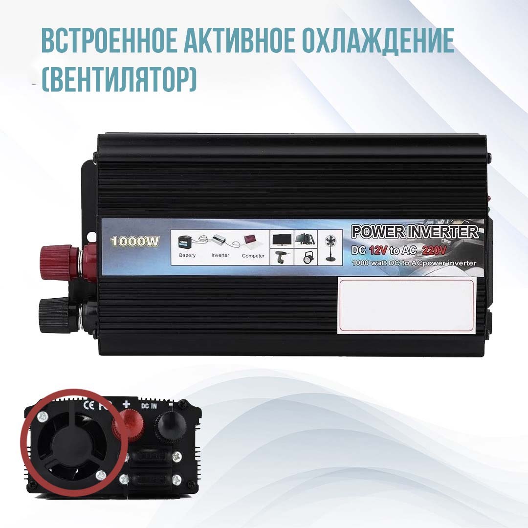 Преобразователь напряжения 12V-220V мощностью 1000W - устройство, предназначенное для подключения и использования разнообразной бытовой техники, электроинструмента, ноутбука, телефона, различной видео- и аудиотехники, а также других электроприборов в условиях, где нет сетевых источников питания. К примеру, в путешествиях на автомобиле, прогулках на катере, в гараже, на даче и в аварийных ситуациях. В качестве источника 12V напряжения могут применяться аккумуляторы автомобиля, ветровые и солнечные генераторы.