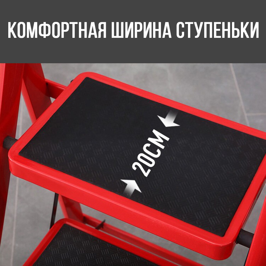 Тип Односторонняя Габариты в сложенном виде 40х5х88 см Максимальная нагрузка До 200 кг Количество ступеней 3 ступеньки Материал Сталь