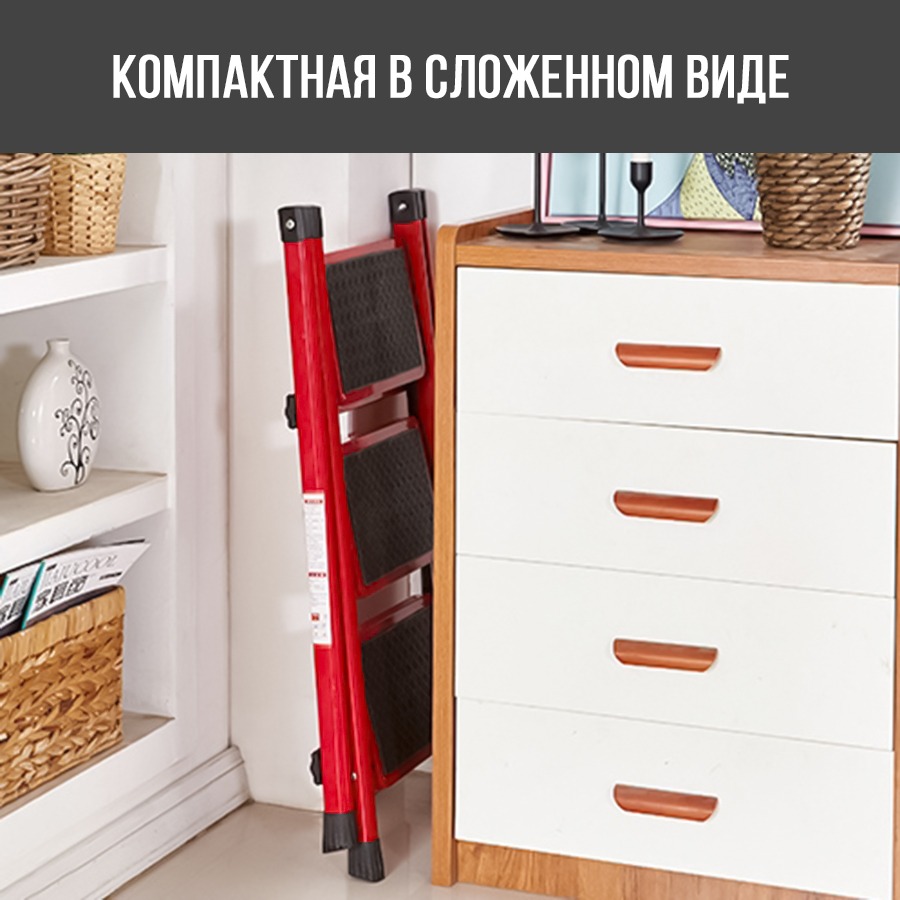 Благодаря компактным размерам, стремянку удобно хранить даже в тесных условиях городской квартиры!