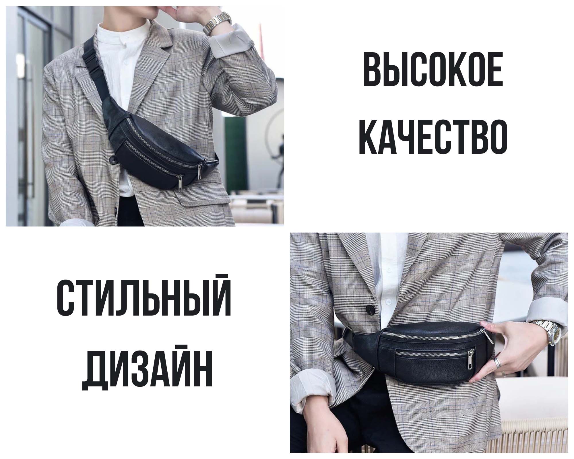 Мужская кожаная сумка бананка. Поясная сумка