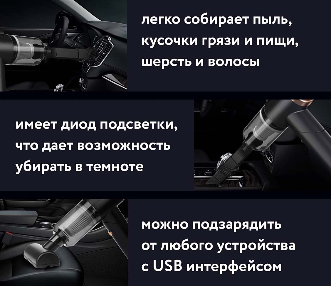 Аккумуляторный ручной автомобильный пылесос с насадками