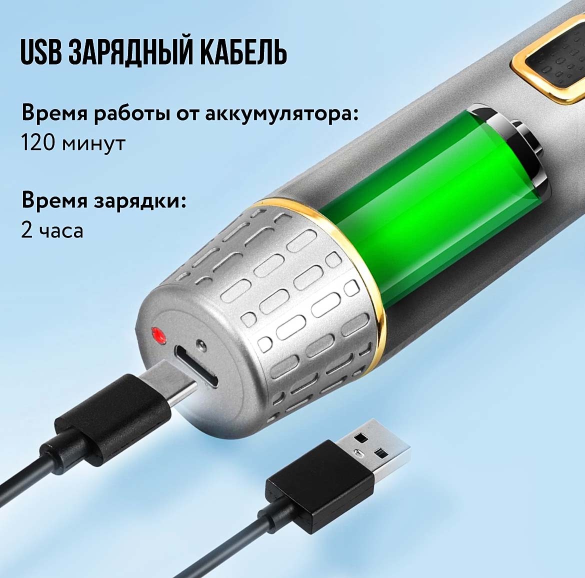- Время работы от аккумулятора: 120 минут