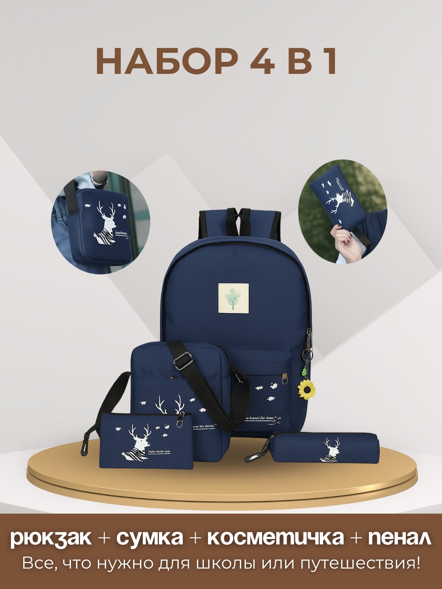 Модный набор 4 в 1 для школьников, вместительный рюкзак + сумка + косметичка + пенал. Рюкзак идеально подходит для школы и повседневного использования.