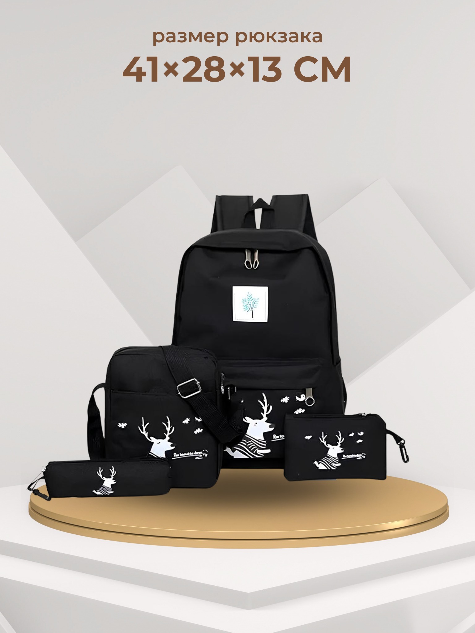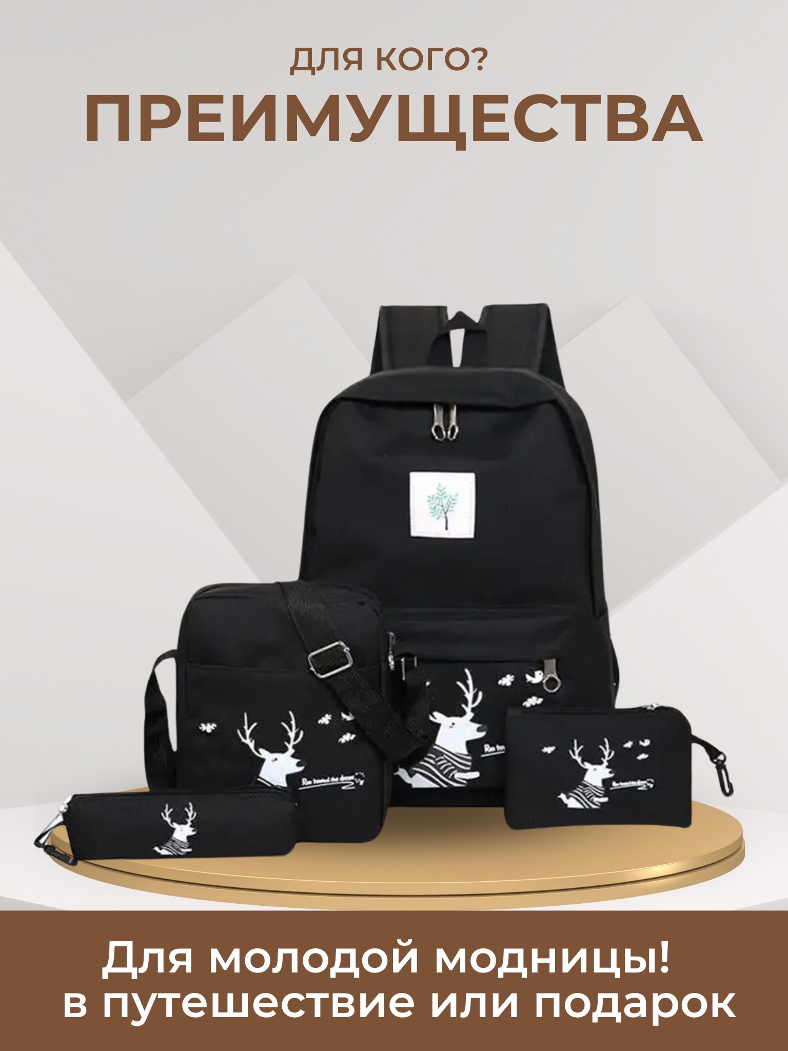Набор сумок 4в1. Рюкзак, сумка, косметичка, пенал черный