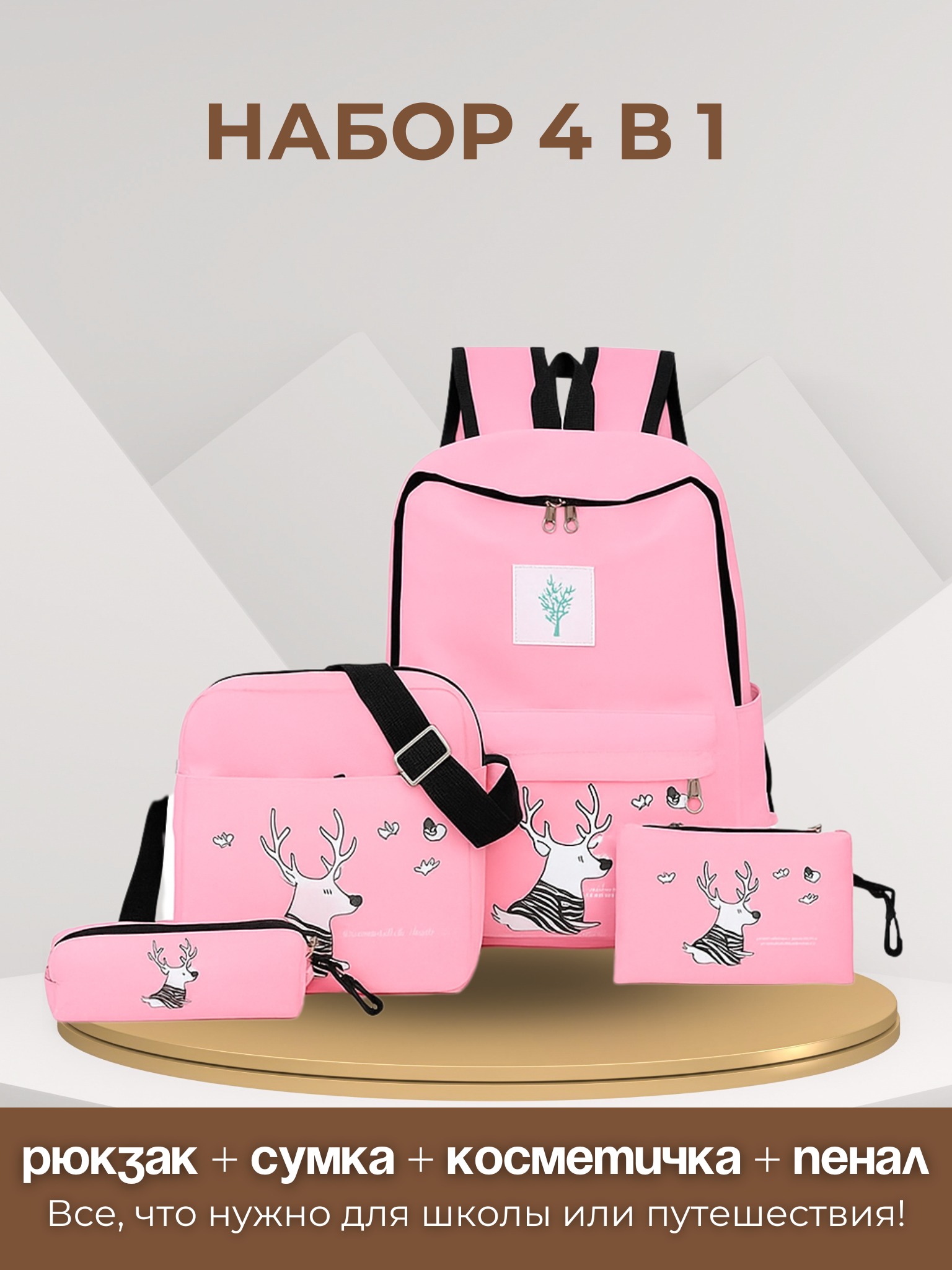 Набор сумок 4в1. Рюкзак, сумка, косметичка, пенал розовый