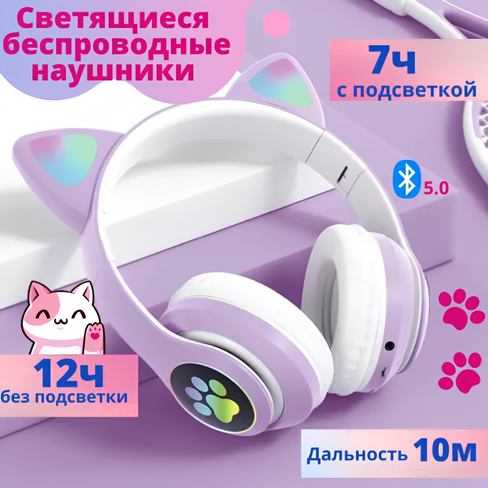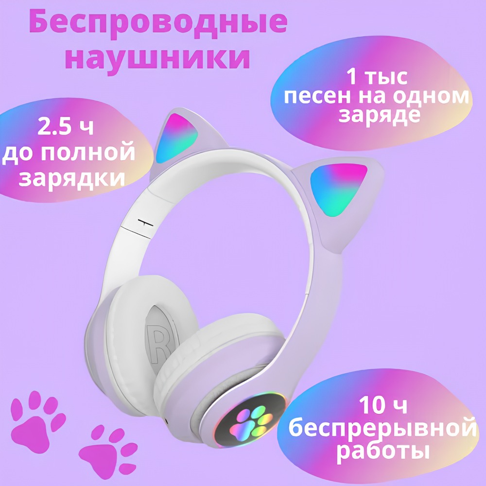 Беспроводные наушники с кошачьими ушками Фиолетовые