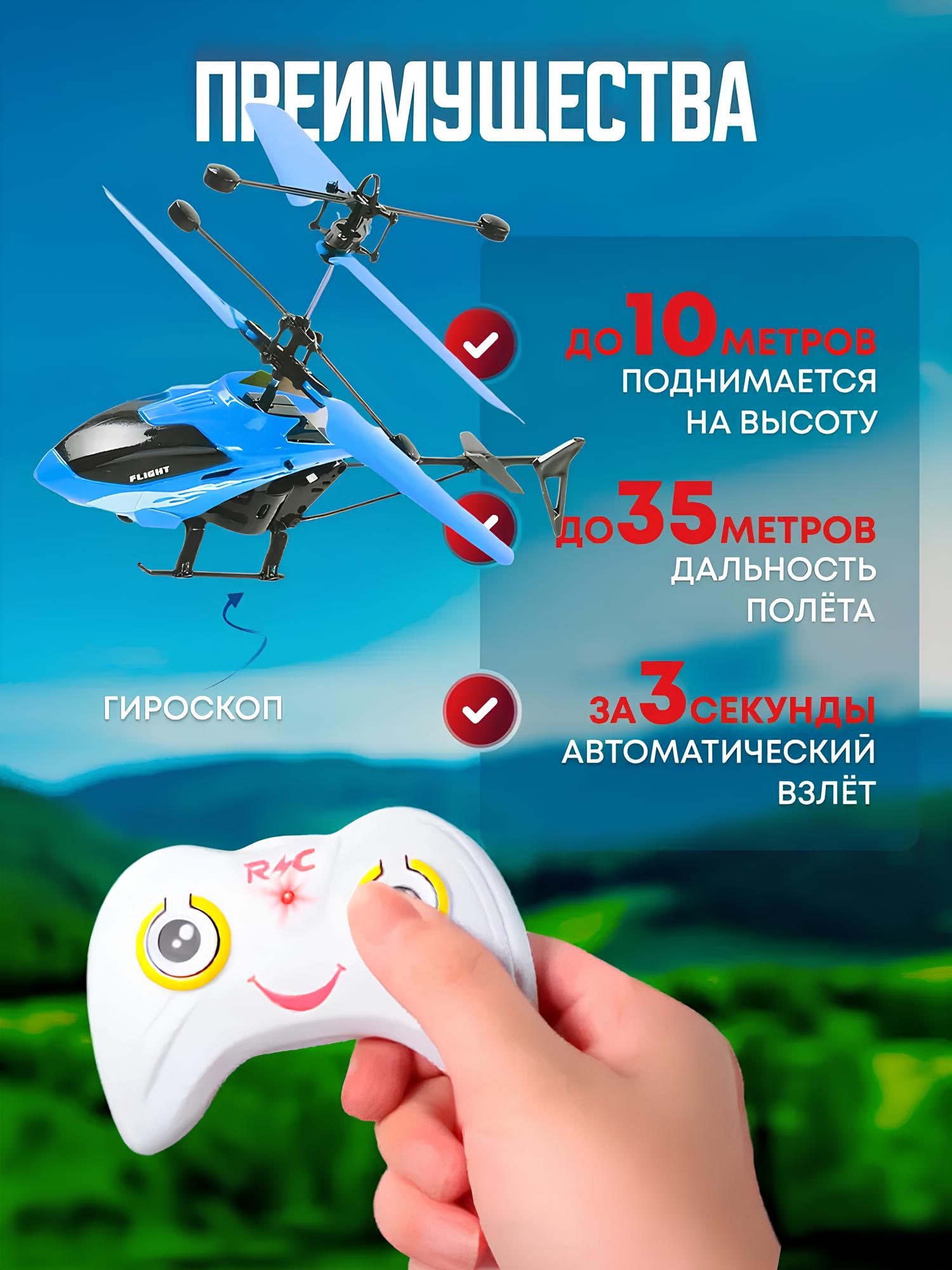 - Инновационный сенсорный запуск: просто поставьте вертолет на руку и он взлетит, мигая огнями.