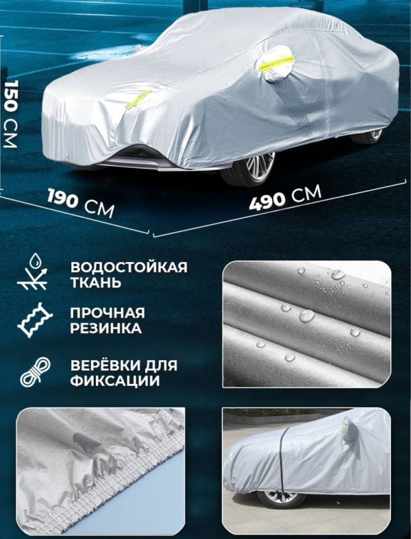 Водонепроницаемый защитный тент-чехол для автомобиля XL (490x190x150см)