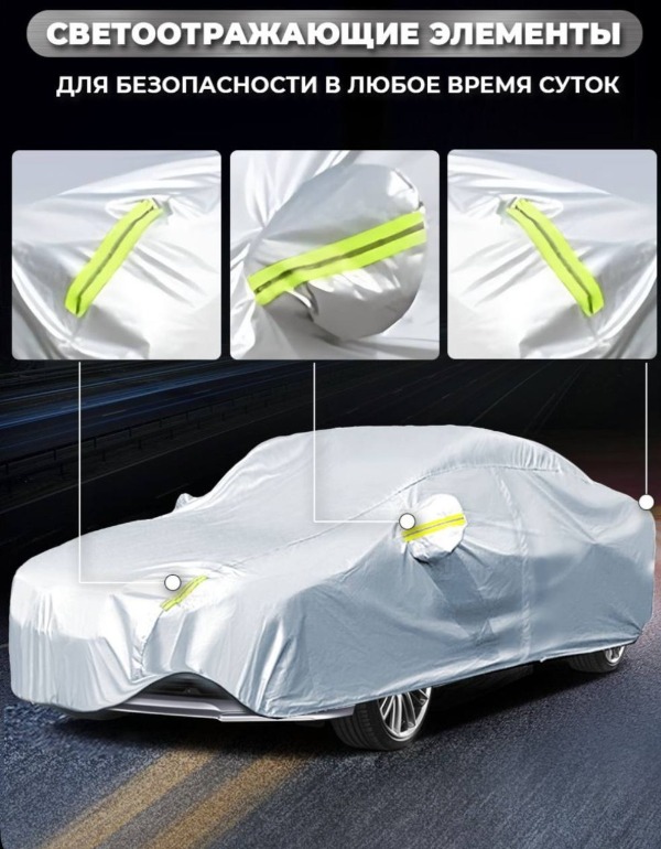 Этот чехол для вашего автомобиля — идеальное сочетание стиля, практичности и защиты. Его продуманный дизайн обеспечивает надежную защиту от пыли, дождя и солнечных лучей, при этом подчеркивает вашу индивидуальность и внимание к деталям. Каждый автолюбитель стремится сохранить свой автомобиль в идеальном состоянии как снаружи, так и внутри. Светоотражающие полоски, встроенные в чехол, не только придают ему стильный вид, но и повышают безопасность, ведь важно, чтобы ваш автомобиль был заметен в любое время суток, особенно в условиях низкой видимости. Этот чехол станет надежной защитой для вашего автомобиля, а также стильным аксессуаром, который подчеркнет вашу заботу о нем и выделит вас среди других.
