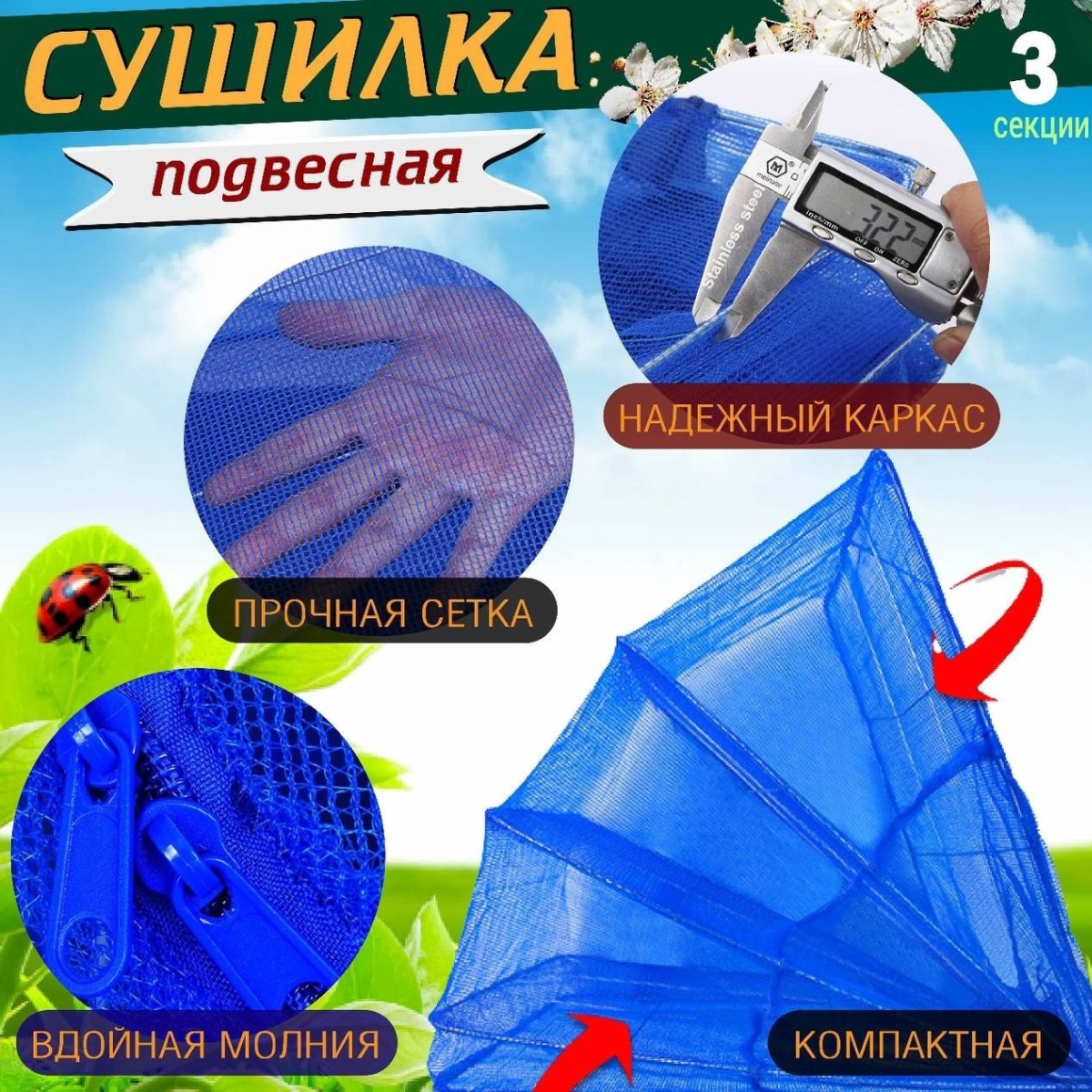 Складная сетка для сушки рыбы, грибов ,овощей и фруктов (35x35x65)