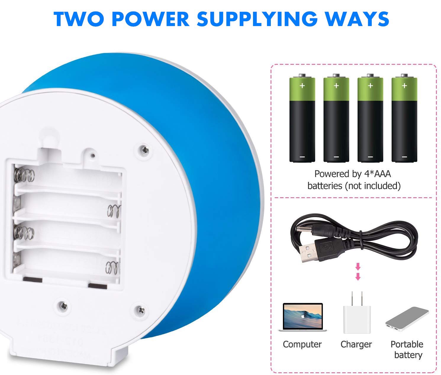 Нічник St.Master, що обертається, працює від 4 батарейок типу АА або від USB шнура, який поставляється в комплекті. У нічнику встановлено 4 кольорові та 1 білий світлодіод - їх можна включати в окремому режимі. Усього є 3 кнопки: світіння білим або кольоровим світлом та режим обертання півсфери.