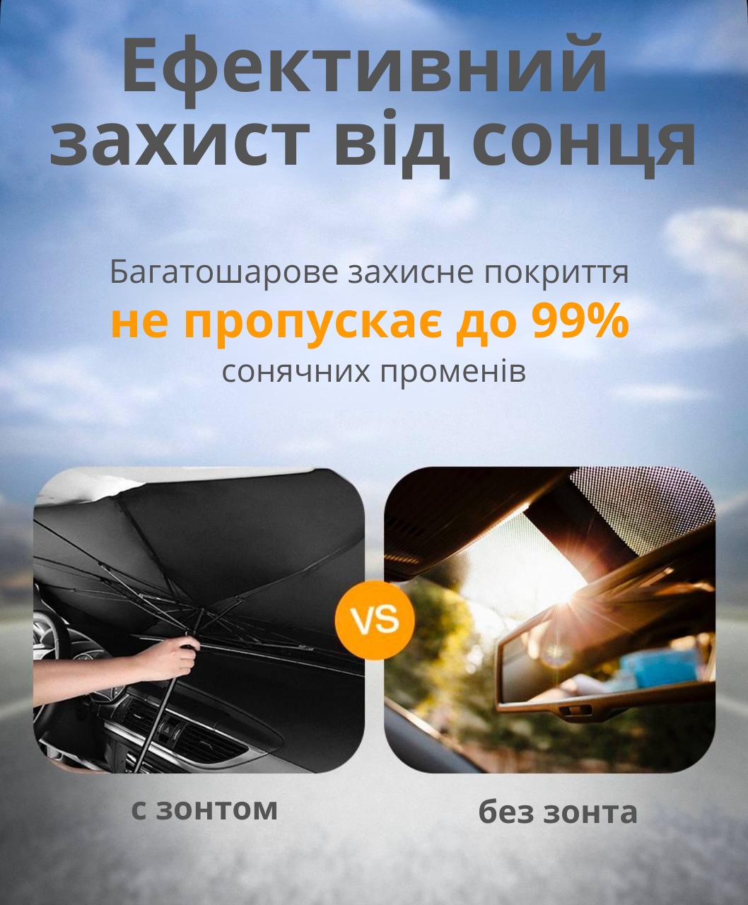 Забезпечте своєму авто прохолоду та надійний захист разом із нашою сонцезахисною парасолею!Характеристики: