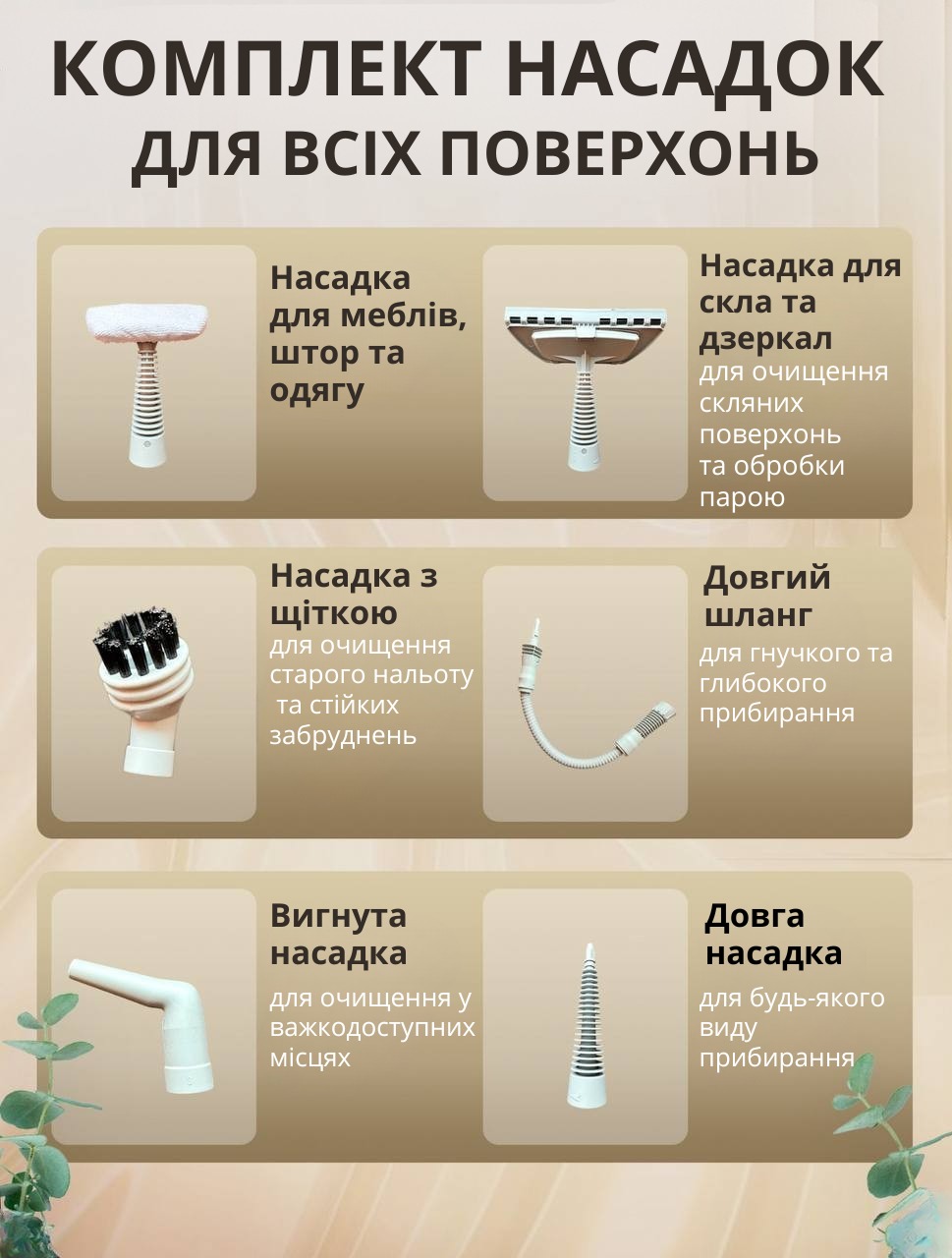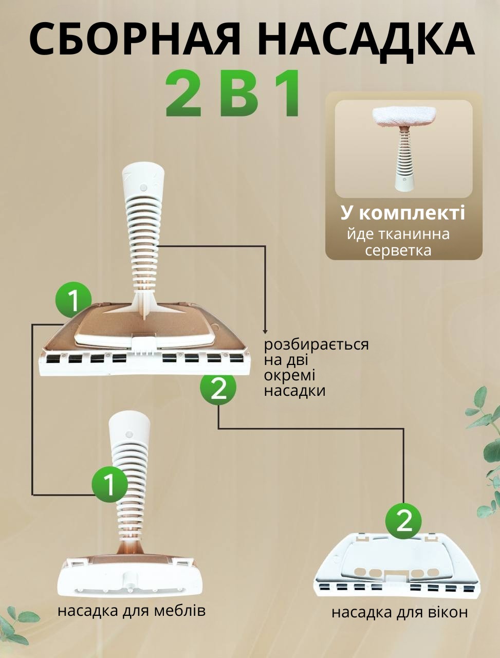 Універсальність: У комплекті 9 насадок для очищення підлоги, плитки, скла, меблів тощо.
