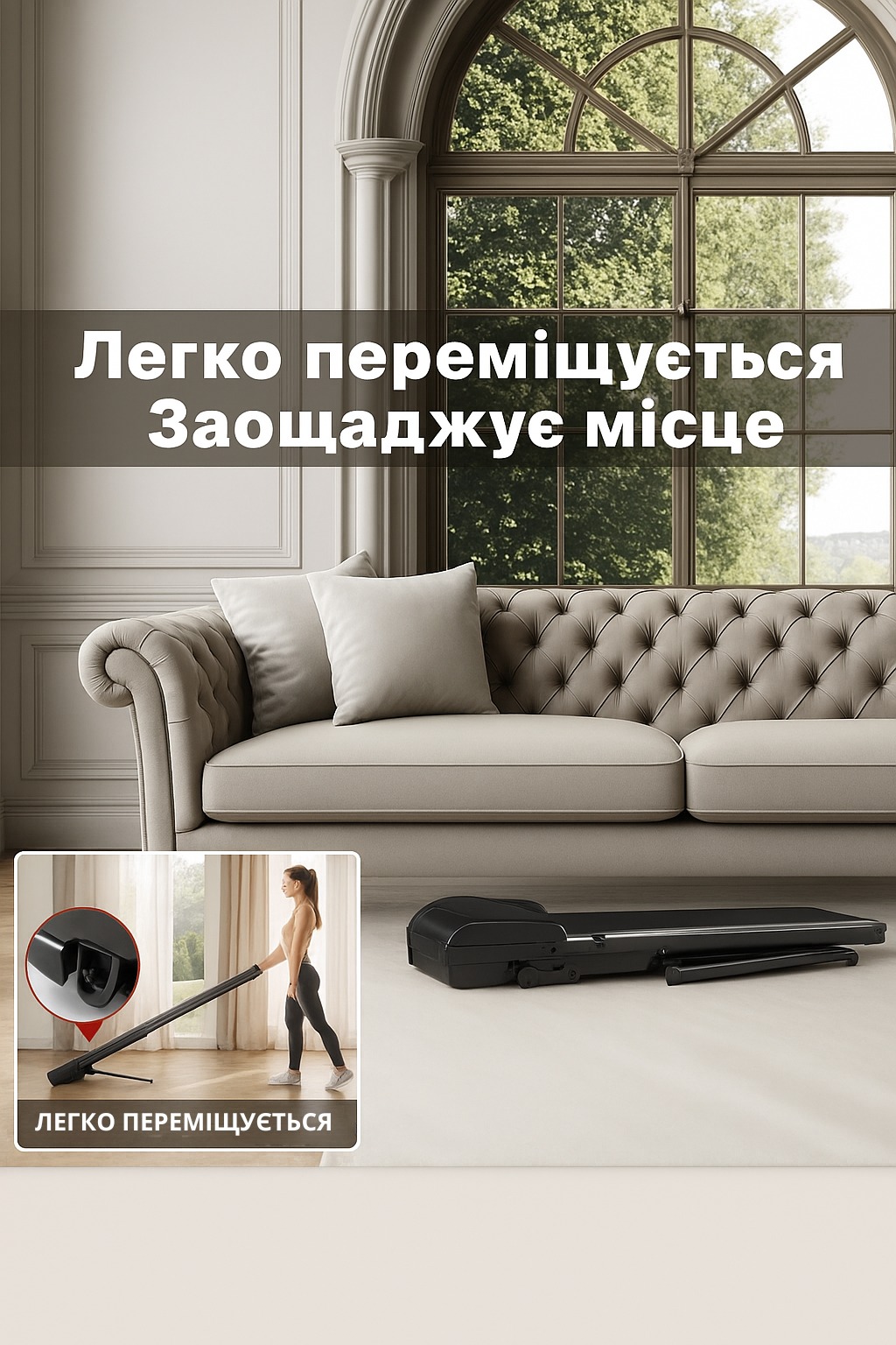 Компактна та потужна бігова доріжка з двигуном на 3,0 к.с. підходить як для ходьби, так і для повноцінного бігу. Витримує навантаження до 150 кг, має три режими швидкості (від відпочинку до швидкого бігу) та оснащена п’ятишаровим антиковзким полотном з амортизацією, яке зберігає суглоби від зайвого навантаження. Складана конструкція дозволяє зберігати доріжку під ліжком або диваном, а вбудовані транспортні колеса забезпечують легке переміщення. LED-дисплей відображає всі ключові показники тренування, а пульт ДУ дає змогу керувати швидкістю без зупинки.