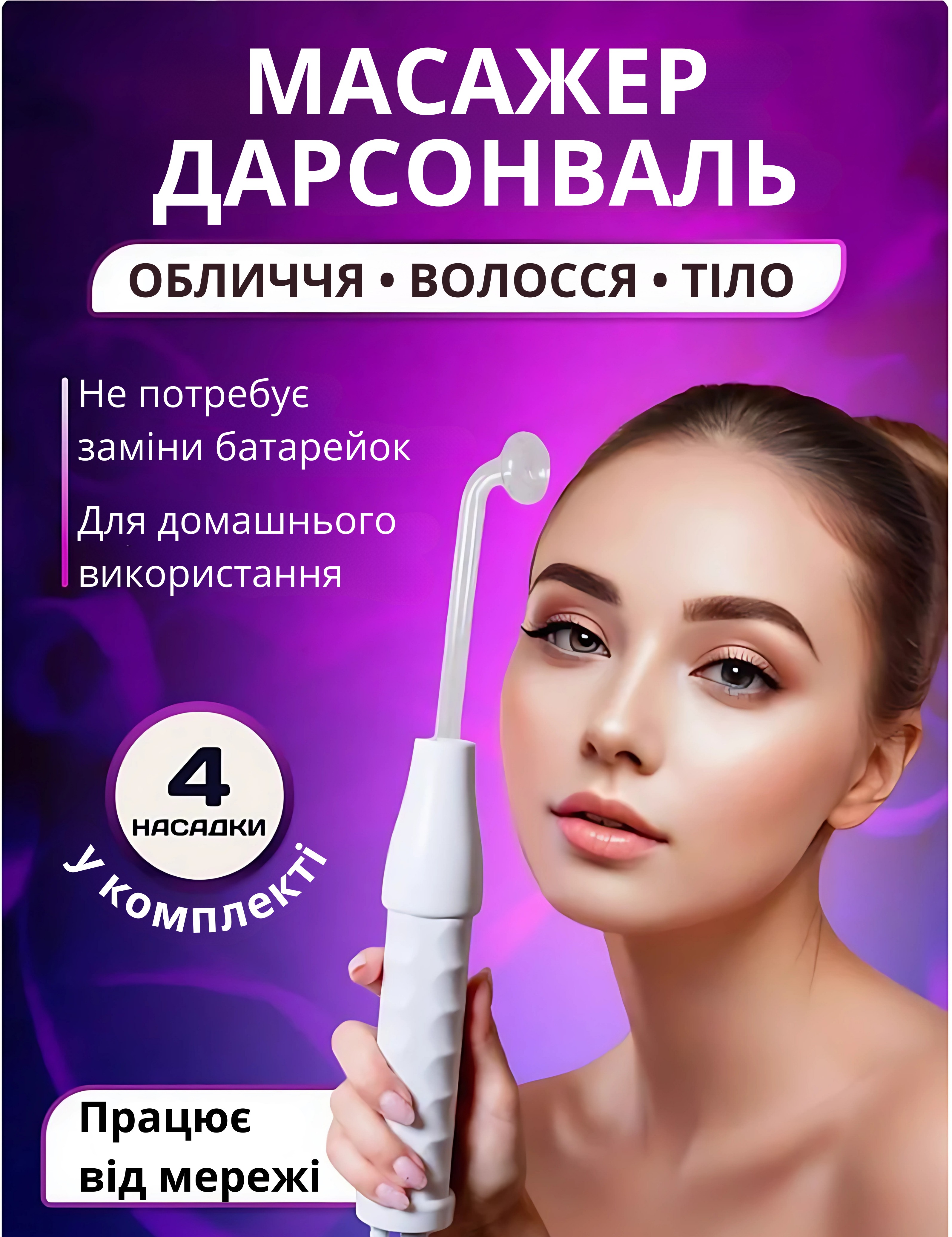 Тип товару: дарсонваль (для обличчя, тіла, волосся)
