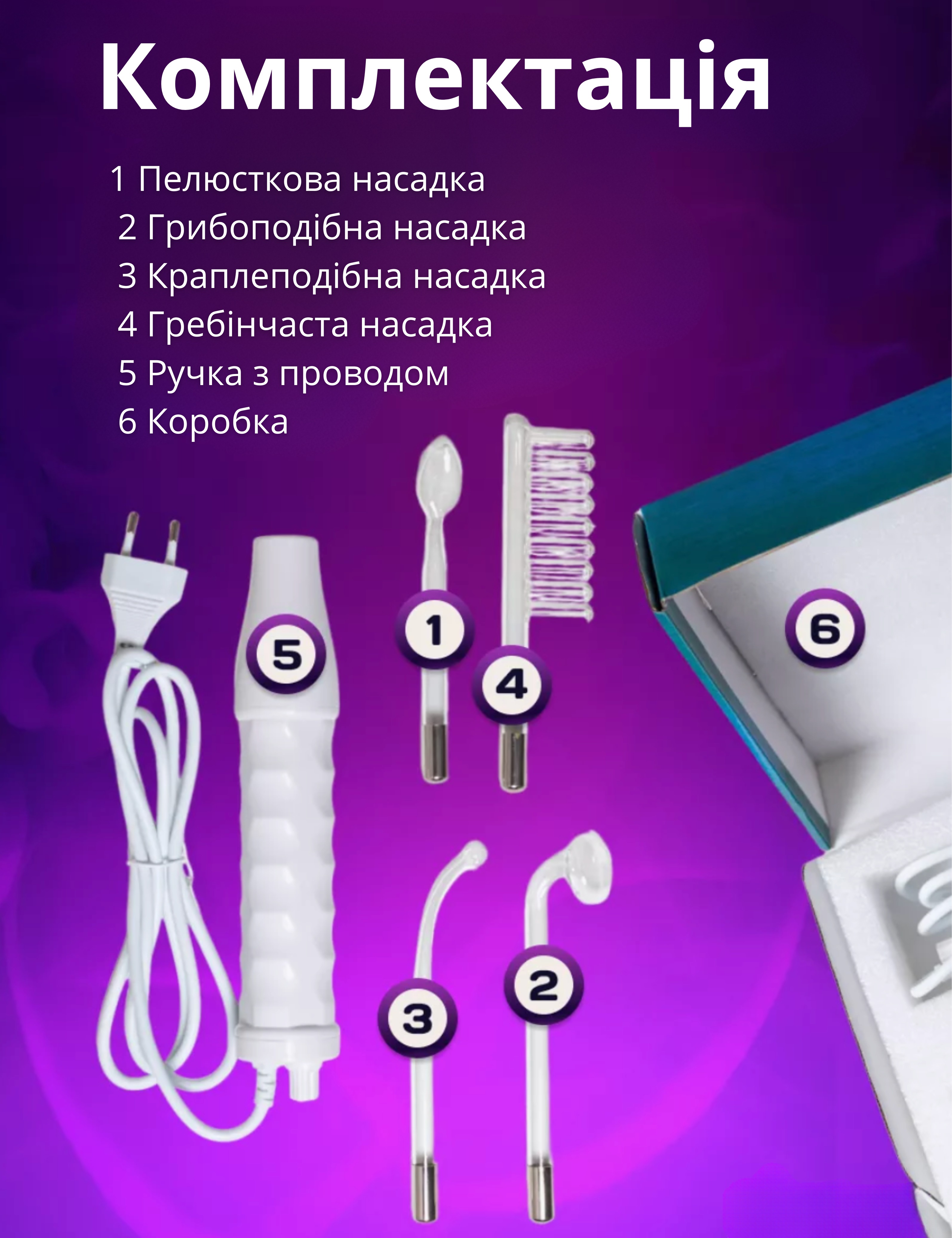 Косметологічний дарсонваль 4 насадки