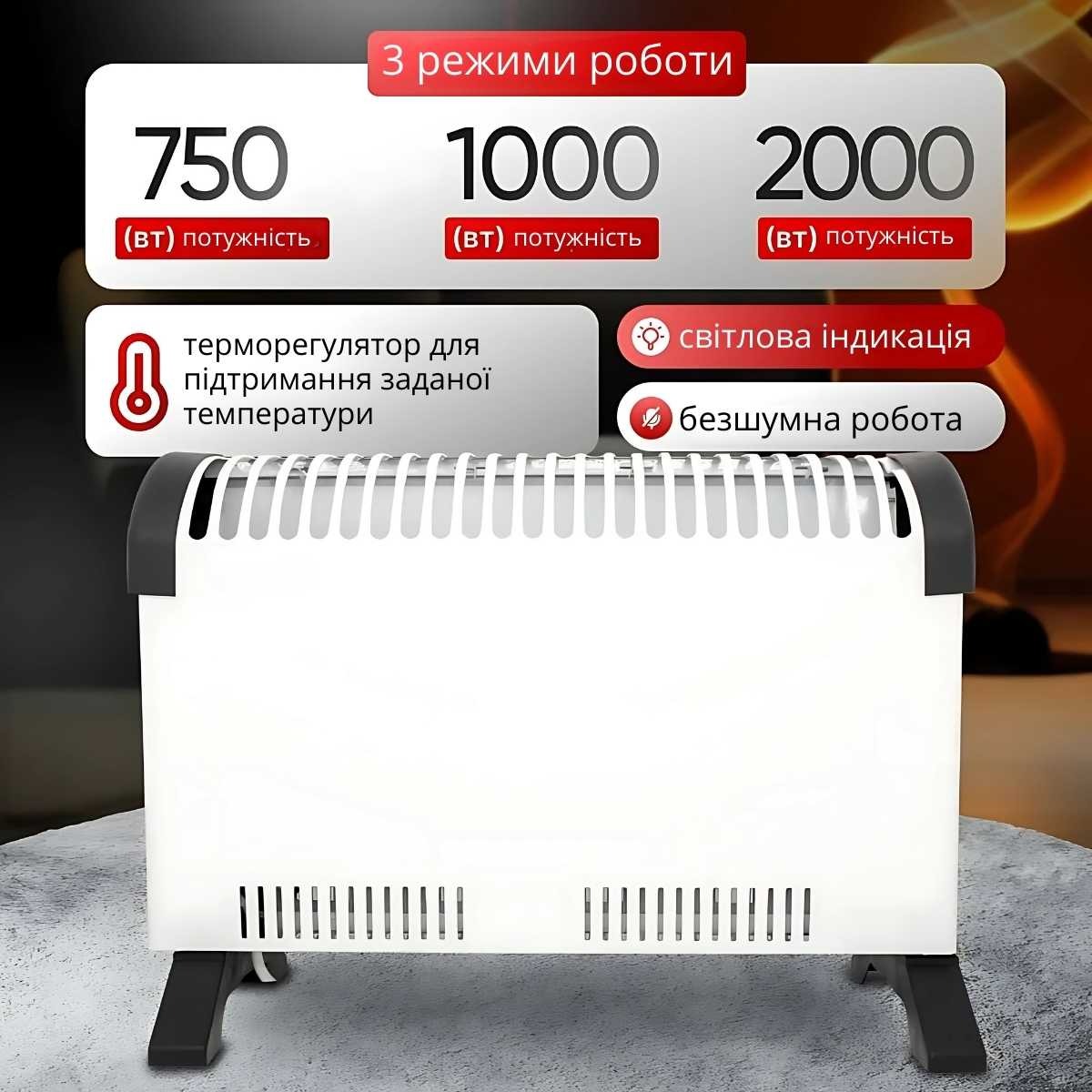 Три рівні регулювання потужності: 750 / 1250 / 2000 Вт