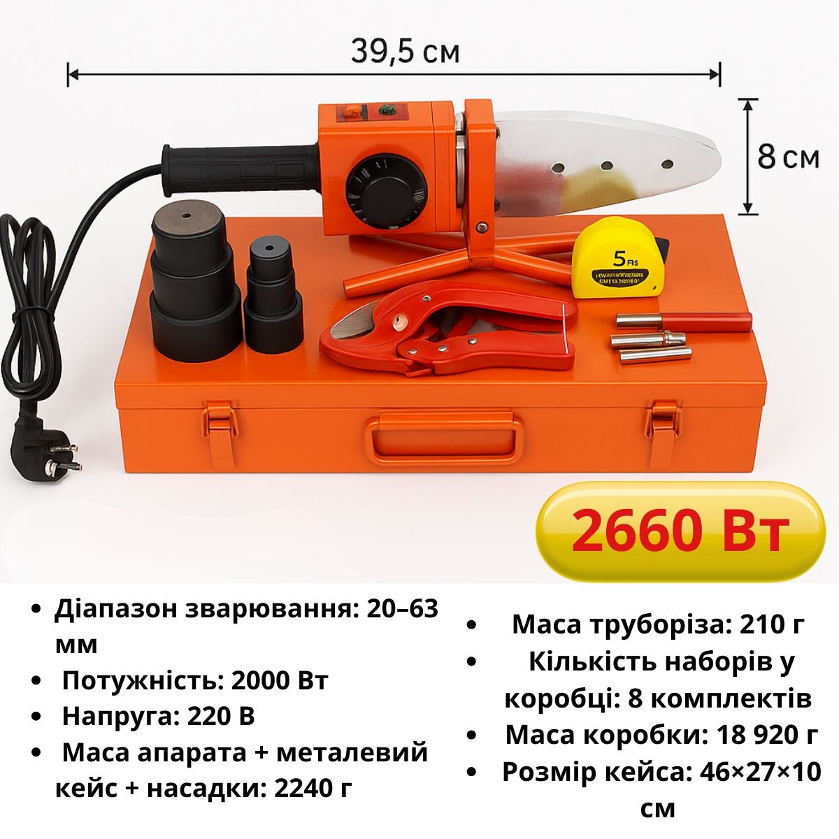 Набір для зварювання/спаювання пластикових труб 2300W в кейсі