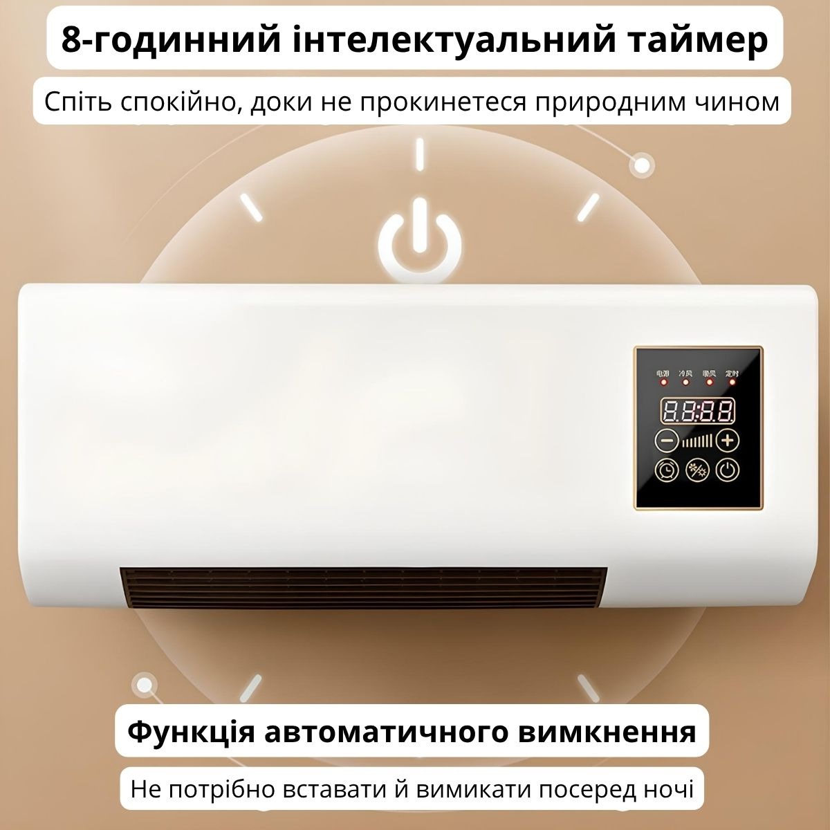 Вбудований таймер дозволяє налаштувати автоматичне вимкнення, а дисплей показує поточний режим.