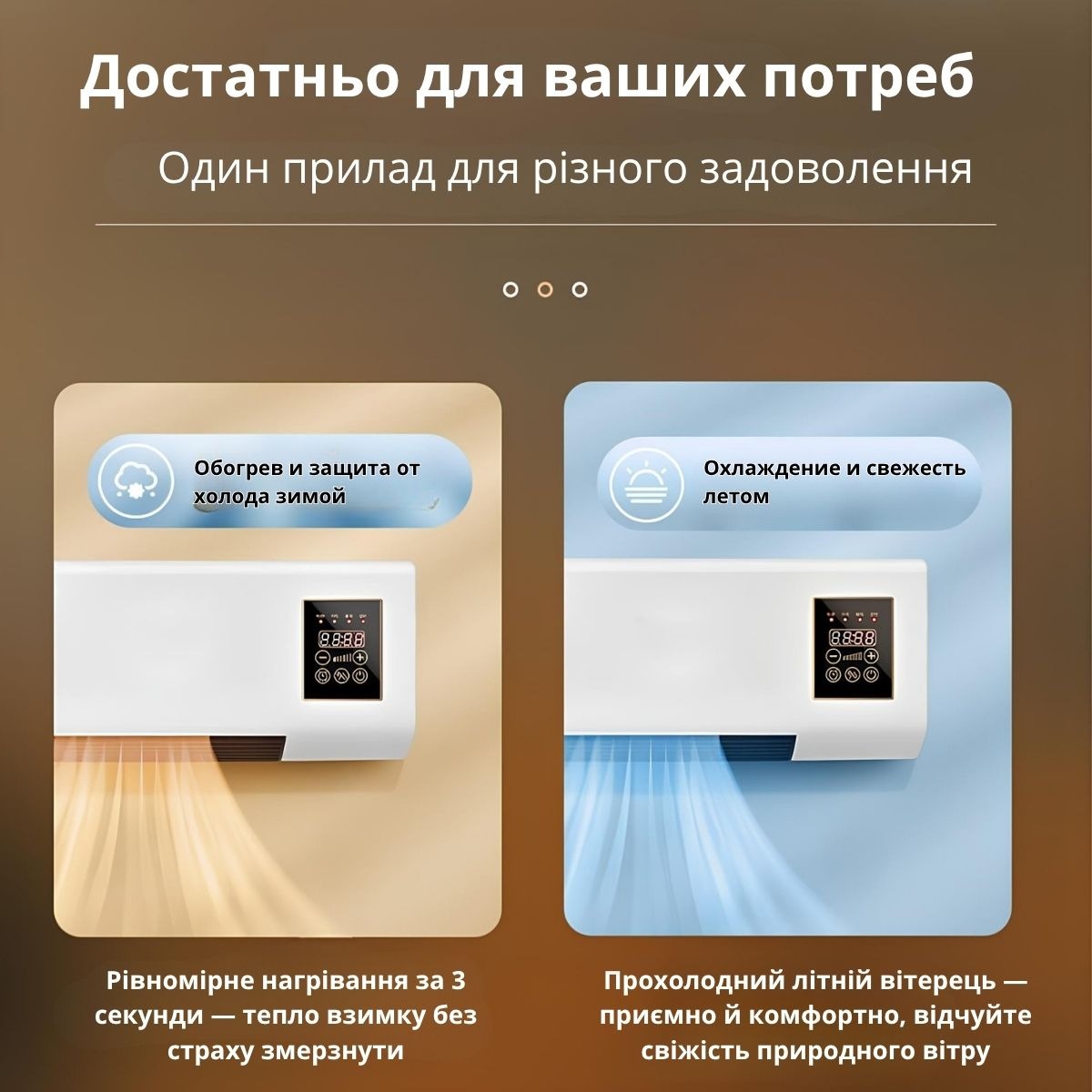Функції: обігрів, вентиляція без нагріву, охолодження