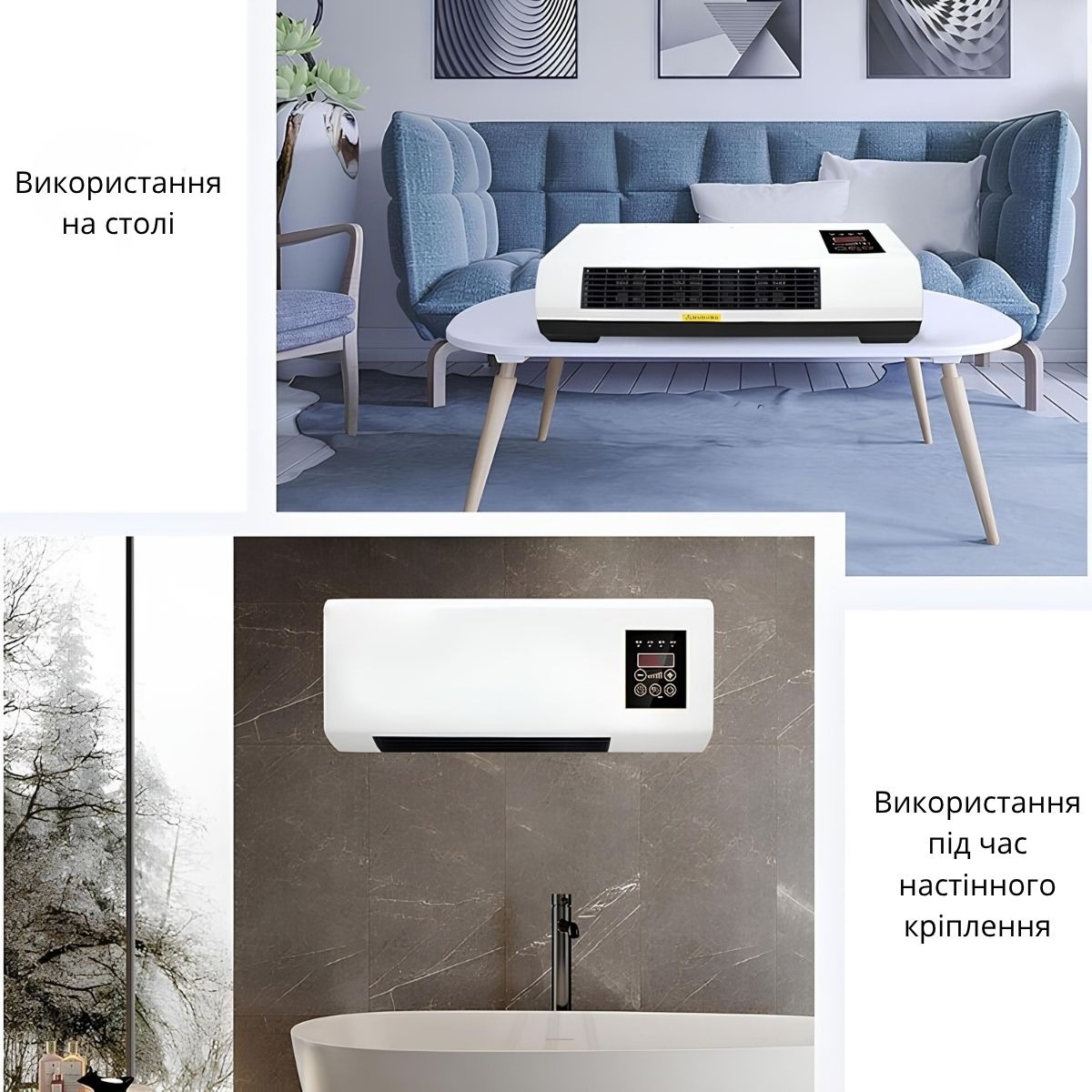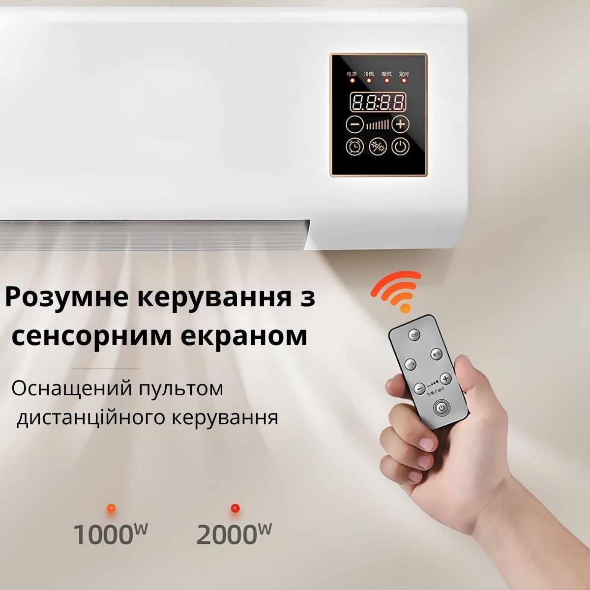 Компактна настінна конструкція дозволяє економити місце, а пульт дистанційного керування забезпечує зручність у використанні.Пристрій має три режими роботи: обігрів, вентиляція без нагріву та комбінований режим.