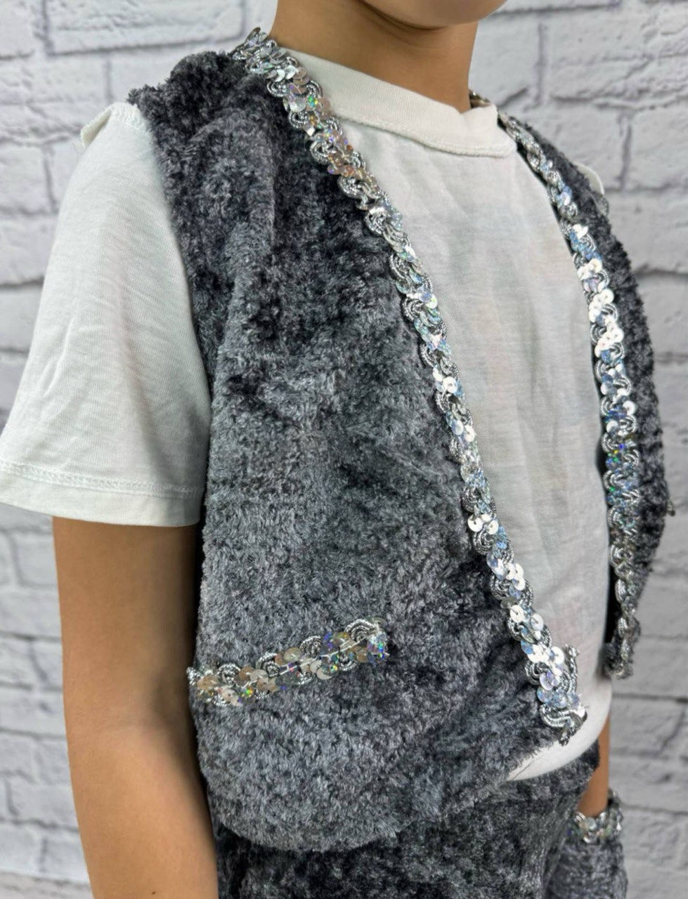Карнавальний костюм “Вовк” — ідеальний вибір для ранків у садочку, шкільних свят, новорічних виступів та тематичних заходів. Образ виконаний у сірих тонах із м’якого та приємного на дотик матеріалу, що забезпечує комфорт під час активних ігор та виступів. Завдяки продуманій комплектації дитина легко перевтілиться у казкового персонажа або героя з лісу.Особливості: