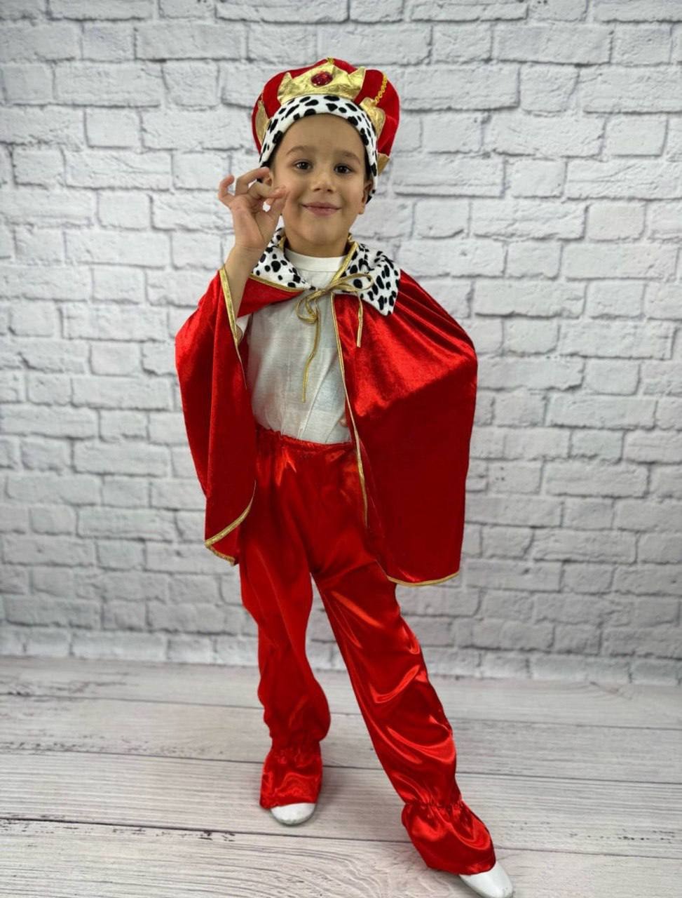 Розкішний костюм Короля у середньовічному стилі створений спеціально для маленьких джентльменів, які люблять бути в центрі уваги. Яскравий червоний колір, плащ з королівською обробкою та стильний головний убір допоможуть дитині відчути себе справжнім володарем казкового королівства.