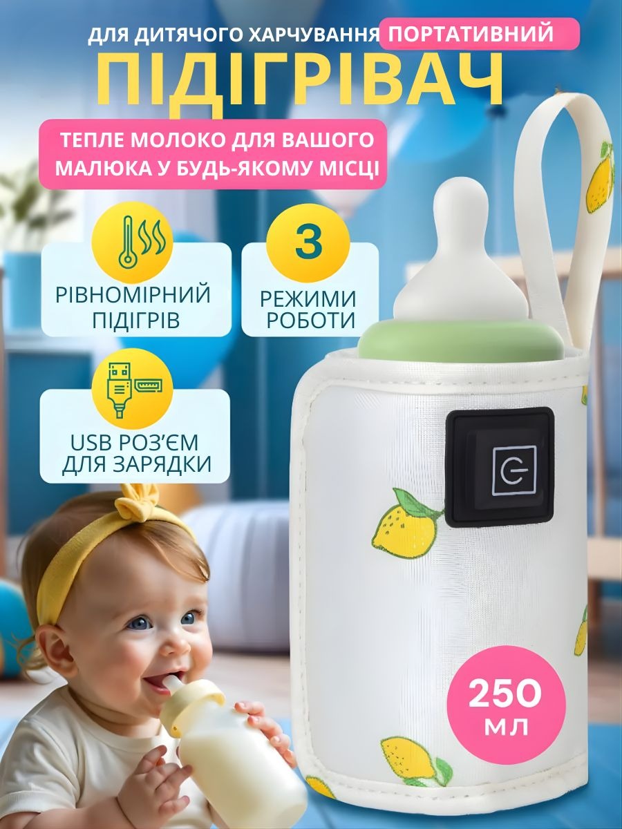 Портативний підігрівач для пляшечок із USB живленням, 3 режими нагріву , універсальний термочохол