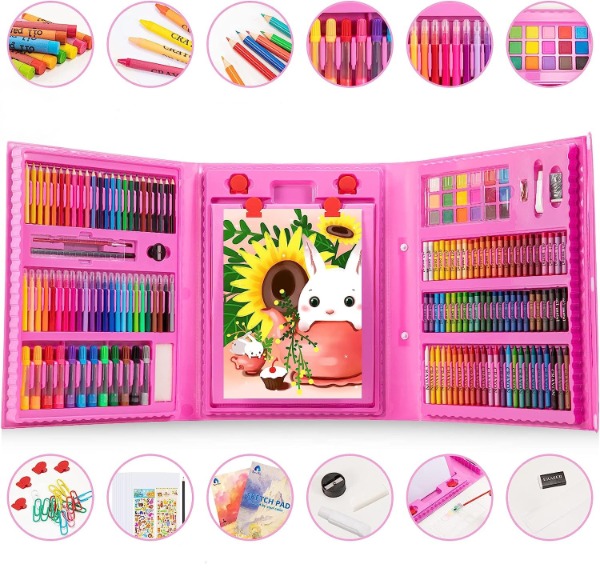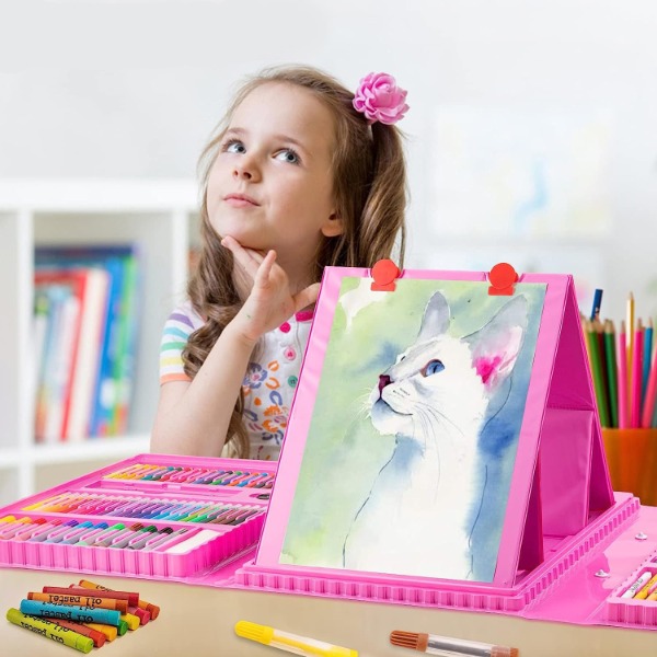Дитячий набір для малювання з мольбертом 208 предметів, рожевий