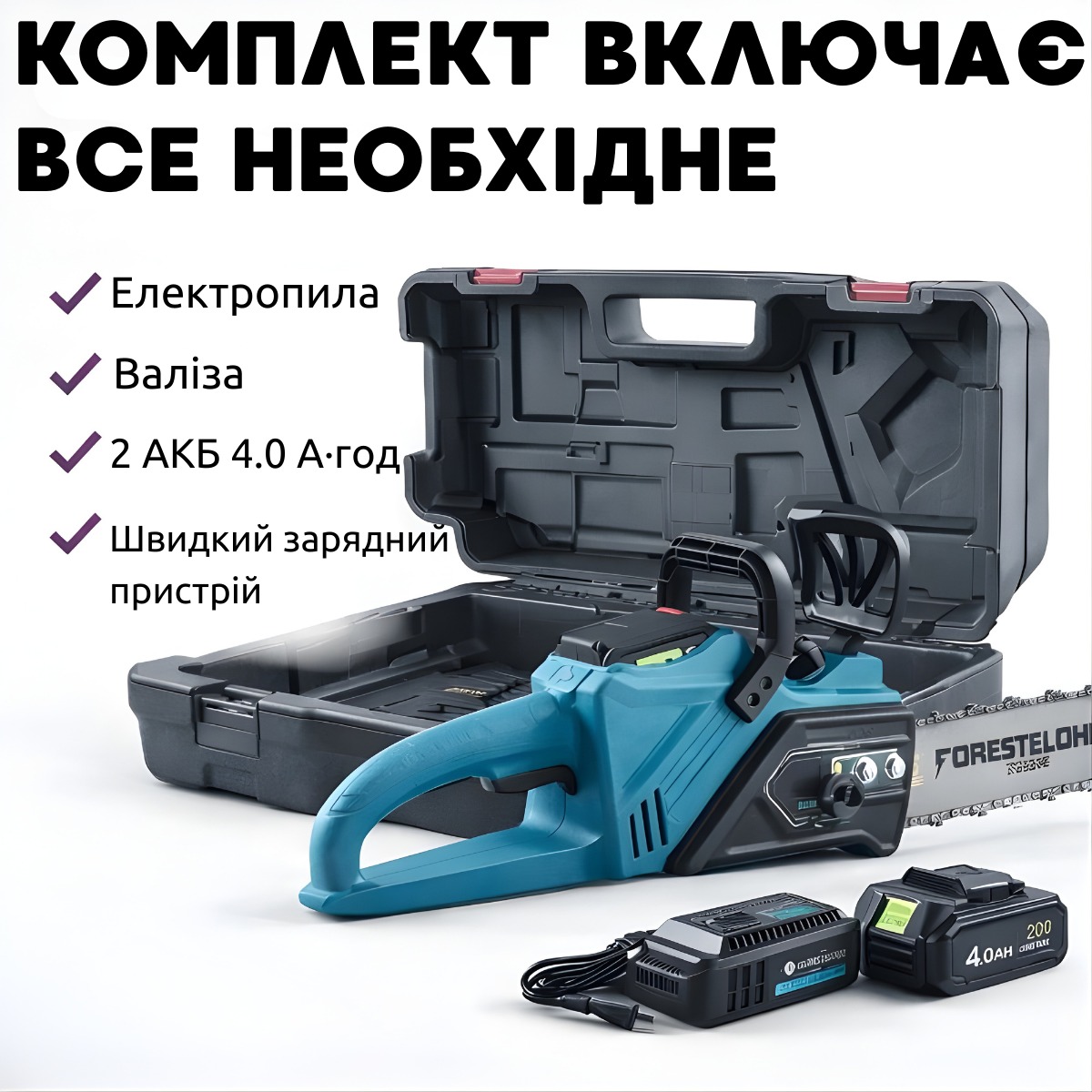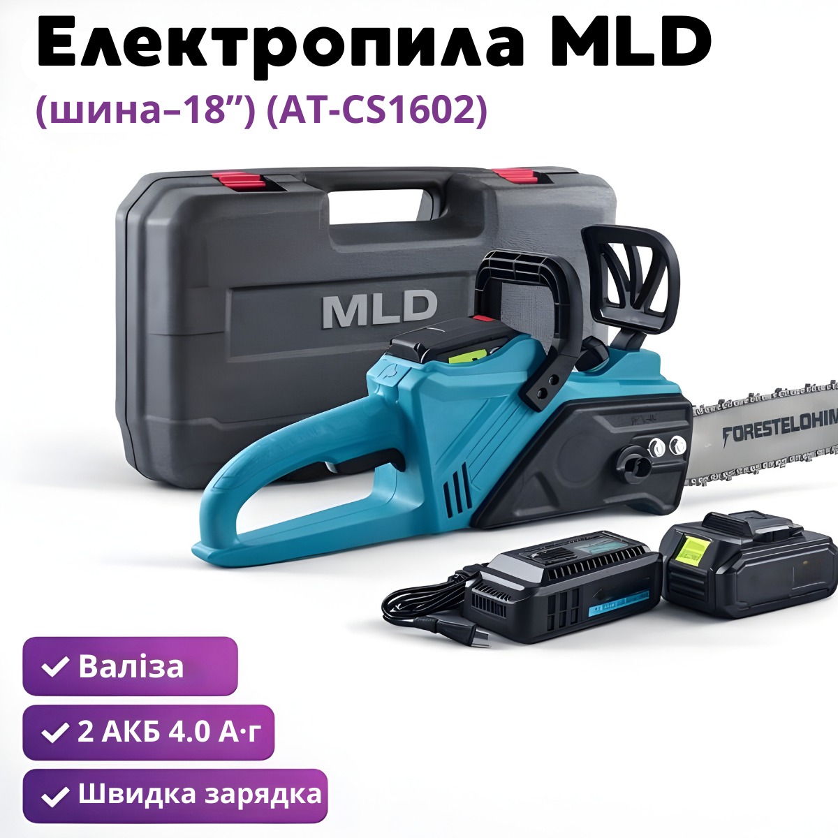 Електропила акумуляторна MLD AT-CS1602, шина 18 дюймів, 2 акумулятори, кейс