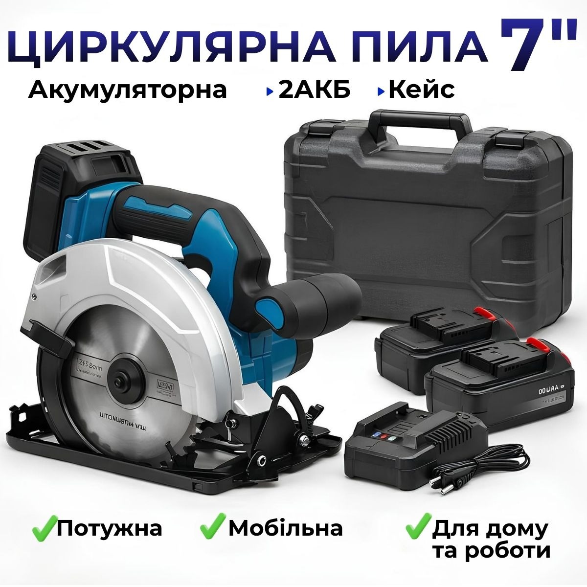 Ручна акумуляторна циркулярна пила 7 дюймів 2 АКБ