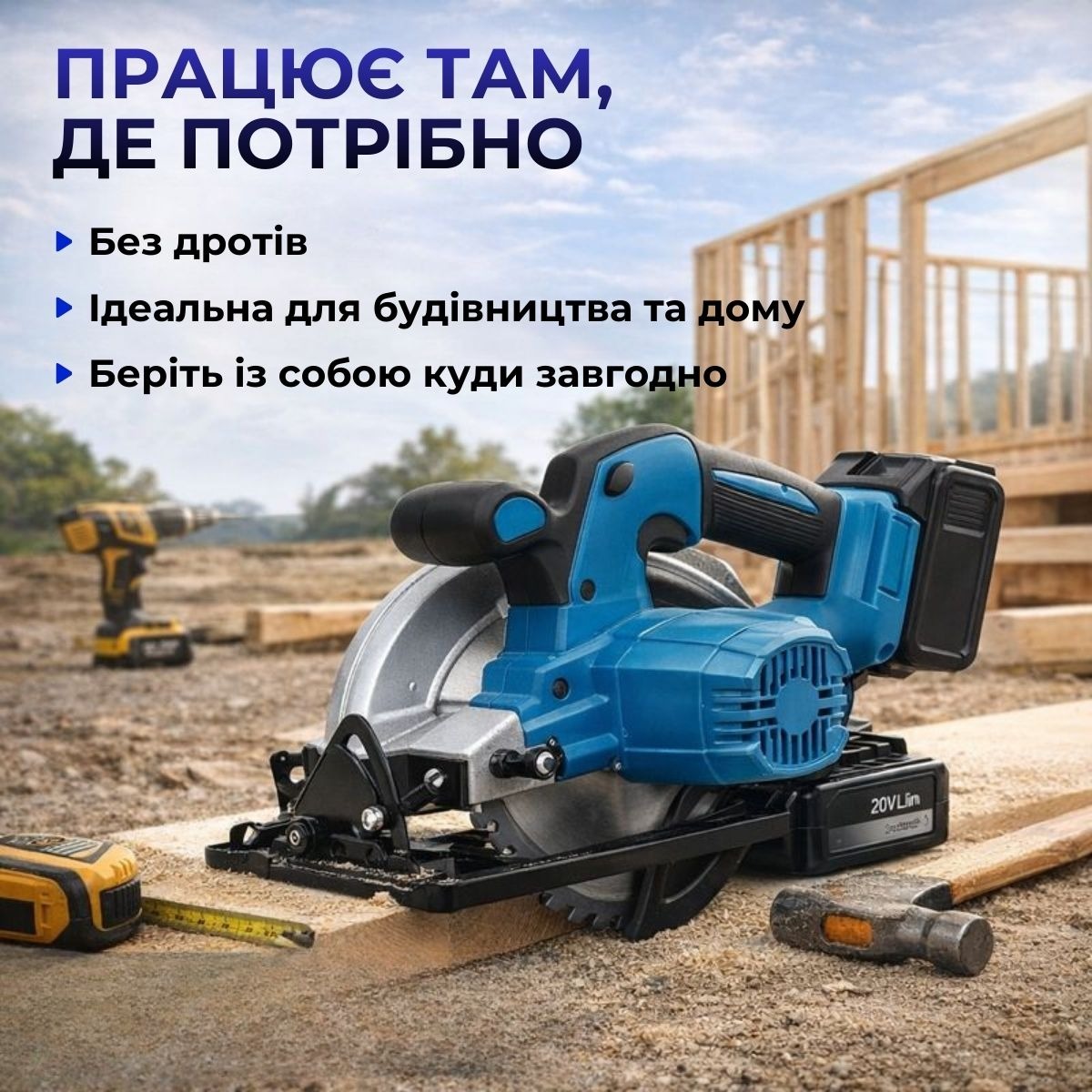 Ця циркулярна пила стане надійним помічником для будівельних, ремонтних і столярних робіт, де важливі точність, швидкість і мобільність.