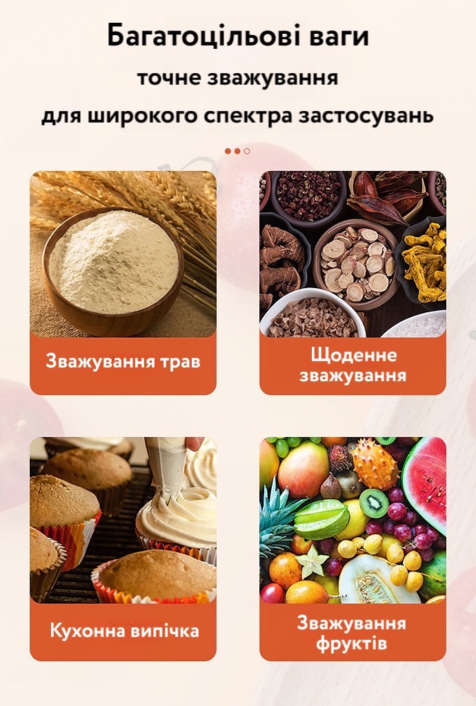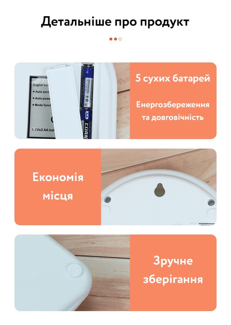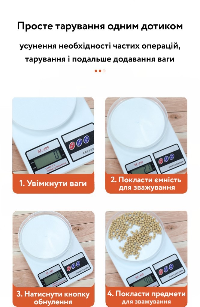 - Автоматичне обнулення (після зважування не потрібно вмикати/вимикати ваги, щоб скинути на 0)