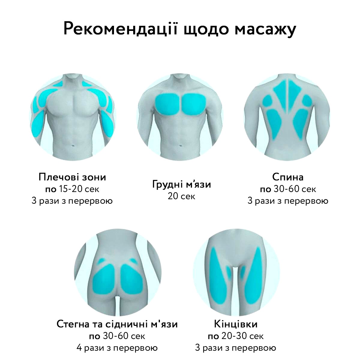 - Плечові зони по 15-20 сек 3 рази із перервою;